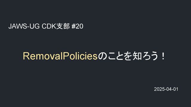 JAWS-UG CDK支部 #20 RemovalPoliciesのことを知ろう! 2025-04-01