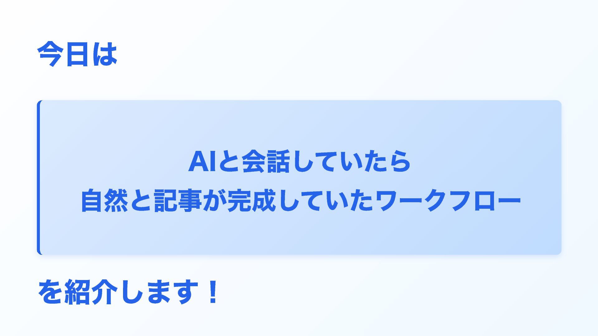 今日は AIと会話していたら 自然と記事が完成していたワークフロー を紹介します!
