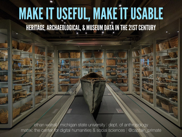 This talk will attempt to parse these challenges and explore the ways in which scholars and institutions can make heritage and archaeological data both useful and usable to a broad array of communities and stakeholders.