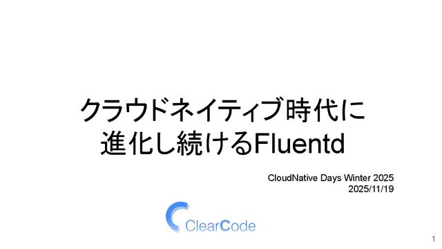 クラウドネイティブ時代に 進化し続けるFluentd CloudNative Days Winter 2025 2025/11/19 1