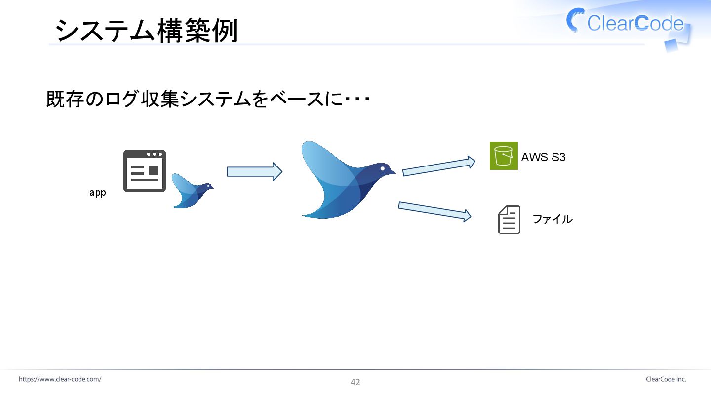 システム構築例 app ファイル AWS S3 既存のログ収集システムをベースに・・・ 42