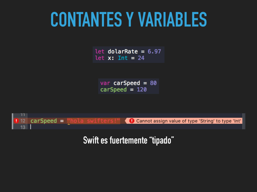 CONTANTES Y VARIABLES Swift es fuertemente “tipado”