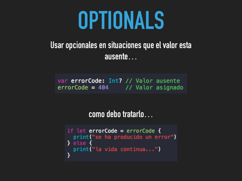 OPTIONALS Usar opcionales en situaciones que el valor esta ausente…