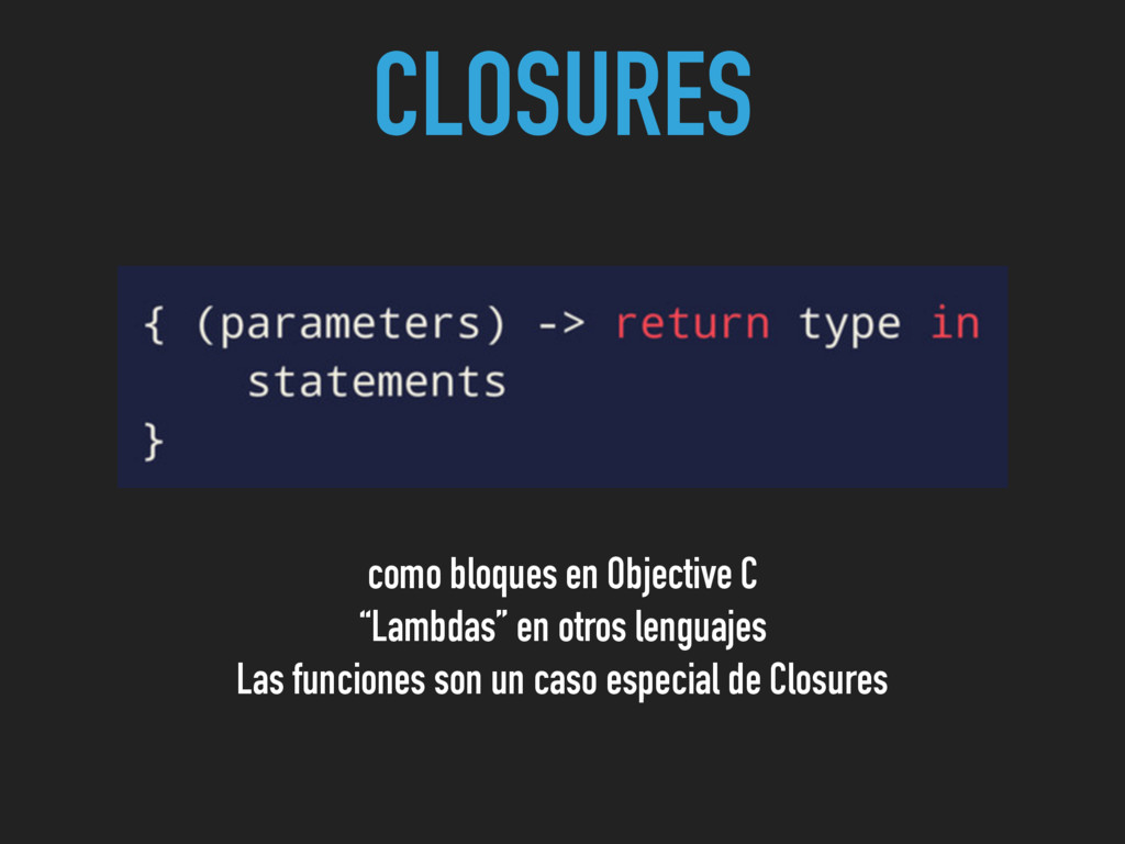 CLOSURES como bloques en Objective C “Lambdas” en otros lenguajes