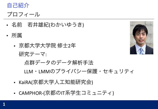 म࢜2 ݚڀςʔϚ: ɹ܈σʔλͷσʔλղੳख๏ ɹLLMɾLMMͷϓϥΠόγʔอޢɾηΩϡϦςΟ ▪ KaiRA(ژେֶਓೳݚڀձ) ▪ CAMPHOR-(ژͷITܥֶੜίϛϡχςΟ)
