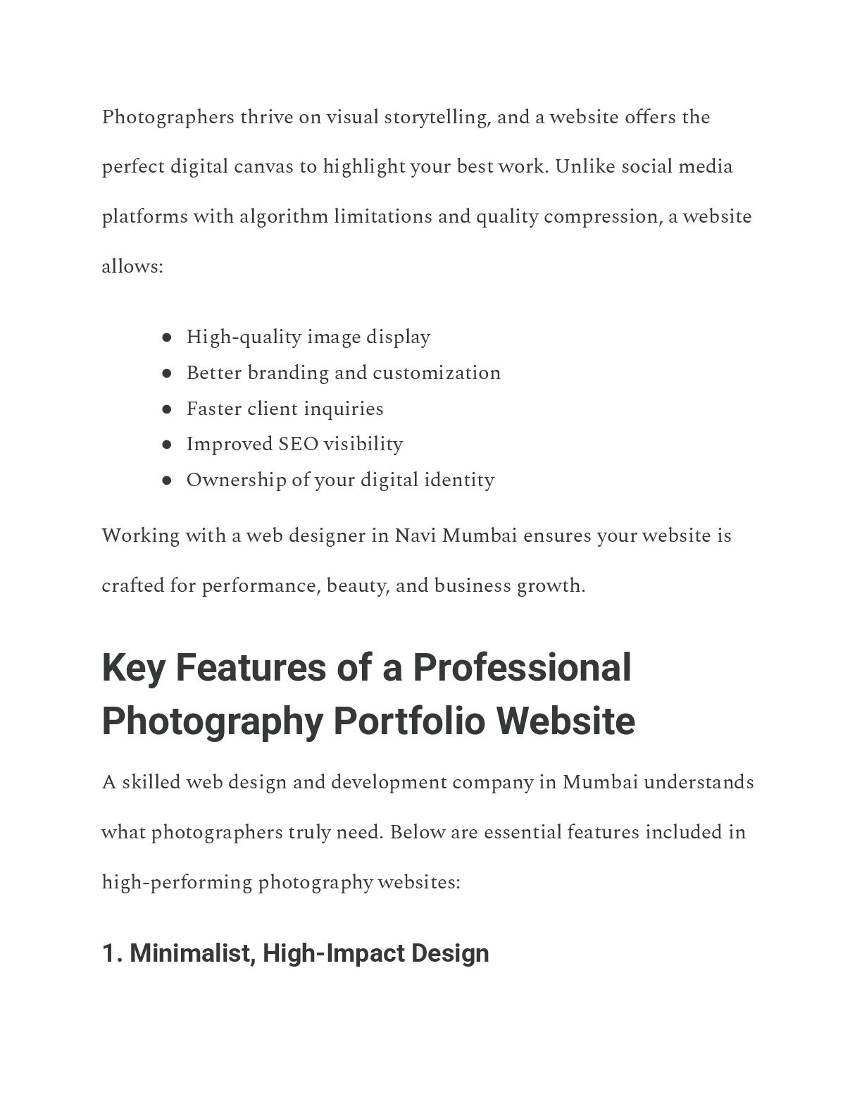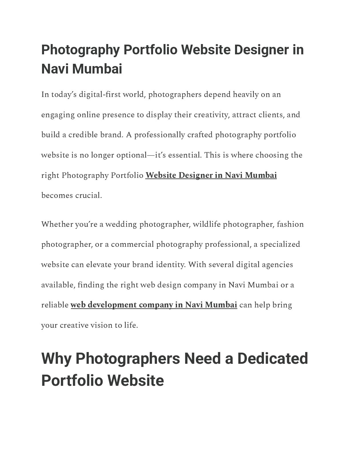 In the digital age, a professional, dedicated photography portfolio website is essential for attracting clients and building a credible brand. Choosing the right Photography Portfolio Website Designer in Navi Mumbai is crucial for photographers—whether focusing on wedding, wildlife, or commercial work—to elevate their brand identity.