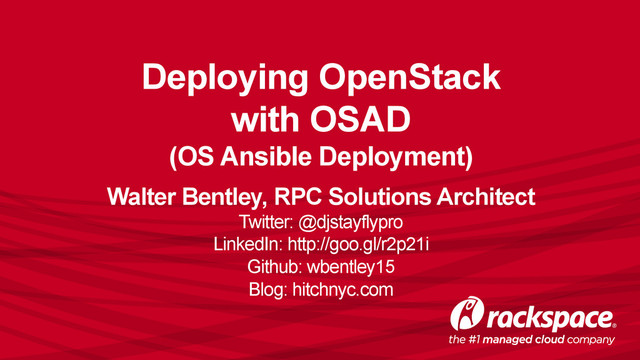 on GitHub repo! • Check GitHub repo for new versions and variables being introduced! • Triple check your network setup! • Re-deployment steps (aka the clean-up process)! • Galera health check playbook! • Running playbooks with ‘-l’"
