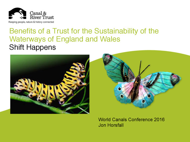 “Benefits of a Trust for the sustainability of canals” frames the creation of Canal & River Trust in 2012 against the background of political, economic and social challenges in England and Wales and the benefits of placing the canal network at the heart of civil society.