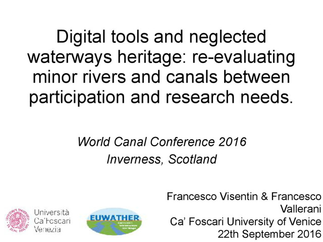 The EuWatHer project (European Waterways Heritage) aims to promote the knowledge and rehabilitation of the unique cultural heritage of minor waterways and historic canals in 4 European pilot regions. The project is aimed at co-designing with people to generate a body of data that could reveal the cultural heritage of minor waterways, in order to promote associated ways of communicating with digital tools this heritage to a range of audiences.