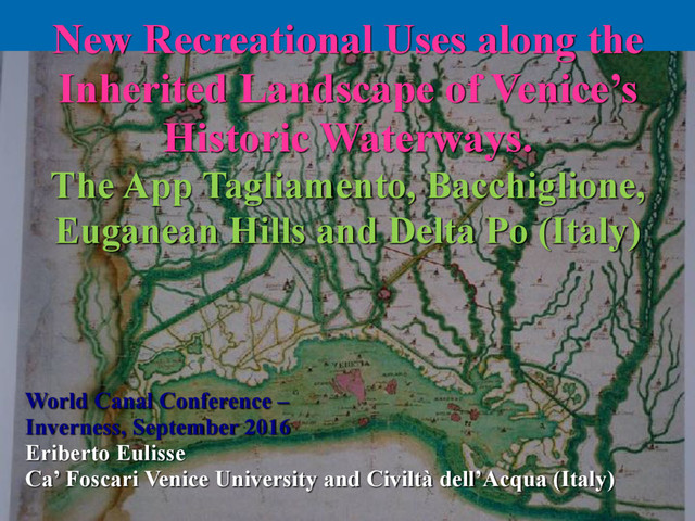 Out of more than 30 million tourist visiting Venice every year, only a limited number know that the historic city of Venice is not located on the seaside, but in the fragile environment of a coastal Lagoon. What is more, while the image of Venice is always associated to developing maritime trades eastward, only few people know that Venice has spent for centuries enormous amount of money to “design” its hydraulic landscape westward.