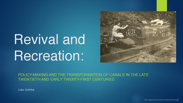 Transformations of canal systems since the mid-20th century, from industrial transportation routes to sites of recreation and leisure, have involved local and national governments in a diversity of international settings. Highlighting the evolving place of canals within post-World War II British economic and social planning, this paper seeks to draw policy makers into a wider conversation regarding the intersecting evolutionary paths of both canal policy and social and recreational policies in the late 20th and early 21st centuries.