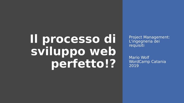 molto facile concentrarsi sulla realizzazione di qualcosa di esteticamente piacevole, dimenticandosi di fare in modo che il sito web raggiunga anche gli obiettivi online della vostra azienda o del vostro cliente. Ecco perché una strategia ben ponderata è fondamentale per il successo di qualsiasi progetto di web design. Mario Wolf - WordCamp Catania 2019