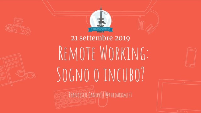 Remote Working: 21 settembre 2019 Sogno o incubo? Francesco Canovi