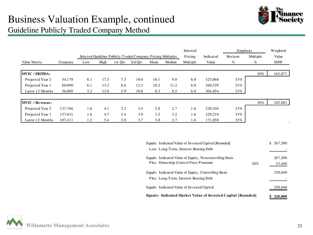 Acquired Company Method 22 Target Target MVIC/ Transaction Company Company Revenue MVIC Revenue EBITDA Pricing Target Company Buyer Company Date $000 $000 $000 Multiples Cypress Pharmaceutical, Inc. Pernix Therapeutics Holdings, Inc. 12/28/12 139,990 47,000 (743) 3.0 Par Pharmaceutical Company, Inc. TPG Capital 9/28/12 1,977,970 1,041,037 238,310 1.9 URL Pharma, Inc. Takeda Pharmaceuticals U.S.A., Inc. 6/4/12 800,000 600,000 NA 1.3 Ascent Pharmahealth Ltd (Australia) Watson Pharamaceuticals, Inc. 1/23/12 392,730 157,092 19,539 2.5 Paddock Laboratories, LLC Perrigo Company Public Limited Company 7/26/11 540,000 200,000 NA 2.7 King Pharmaceuticals, Inc. Pfizer, Inc. 1/28/11 3,221,640 1,534,114 350,178 2.1 Generics Bidco I, LLC (India) Endo Pharmaceuticals Holdings, Inc. 11/30/10 1,175,400 309,316 58,188 3.8 High 3,221,640 1,534,114 350,178 3.8 Low 139,990 47,000 (743) 1.3 1st Quartile 466,365 178,546 19,539 2.0 3rd Quartile 1,576,685 820,518 238,310 2.8 Mean 1,178,247 555,508 133,094 2.5 Har Mean 2.2 St Dev 0.8 Coeff. Var. 32.3 Median 800,000 309,316 58,188 2.5 LTM Period Financial Metric ($000s) 107,411 Multiplied by: Selected Pricing Multiple 1.9 Equals: Indicated Value of Invested Capital 204,081 200,000 $ Equals: Indicated Market Value of Invested Capital [Rounded]