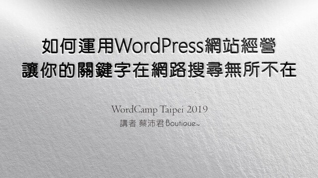 今年 9 月就是使用 WordPress 經營網站的第四年了,在接觸 WordPress 的同時也是開始認識 SEO 的時候。一邊研究一邊經營自己的網站,至今已有 4325 個關鍵字在第一頁了,當發現了這個數字時才驚覺到,原來我經營關鍵字的方式和現下一般的經營方式很不同。難得這次有這樣的機會,針對 WordPress 提出一些操作的方式和大家分享,也期待能和與會的大師們交流而更成長。