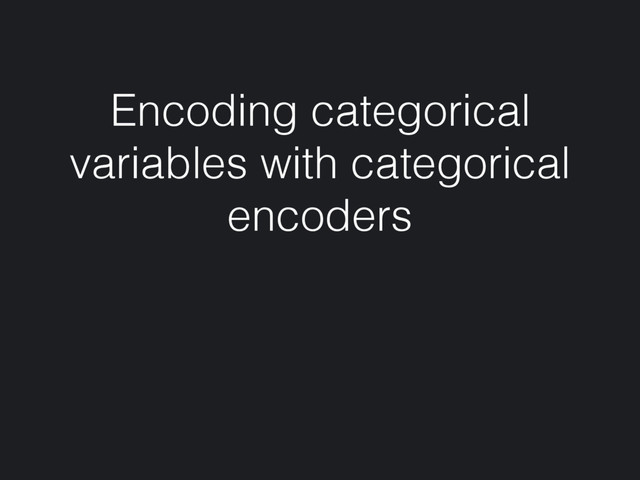 per variable, just use ordinal • If there is only one categorical variable, use one-hot or binary • If there are multiple variables with multiple categories, try hashing with different numbers of columns • Try different encoding techniques for different problems • Use category_encoders and let me know how it works for you.