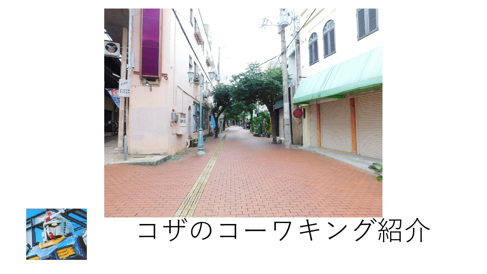 2023年1月にコザのコーワキングスペース、Microsoft base、コザ商店街の話しをしたスライドです。