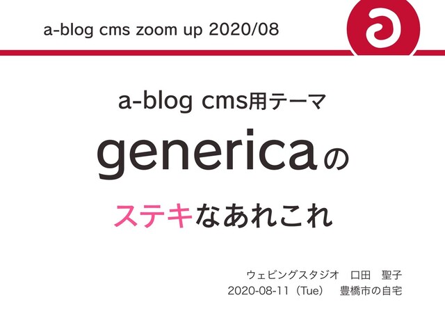 2020年8月11日にオンラインで開催された「a-blog cms zoom up 2020/08」の発表スライドです。プレミアムテーマ「generica(ジェネリカ)」のご紹介と、その開発にあたって、技術面で実装したことを発表しています。