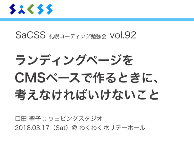 2018年3月17日に開催された「SaCSS vol.92」のショートセッションスライドです。ランディングページをWordPressなどのCMSで管理、運用したいという要件があった場合に、特に考えておかなければいけないことをまとめています。