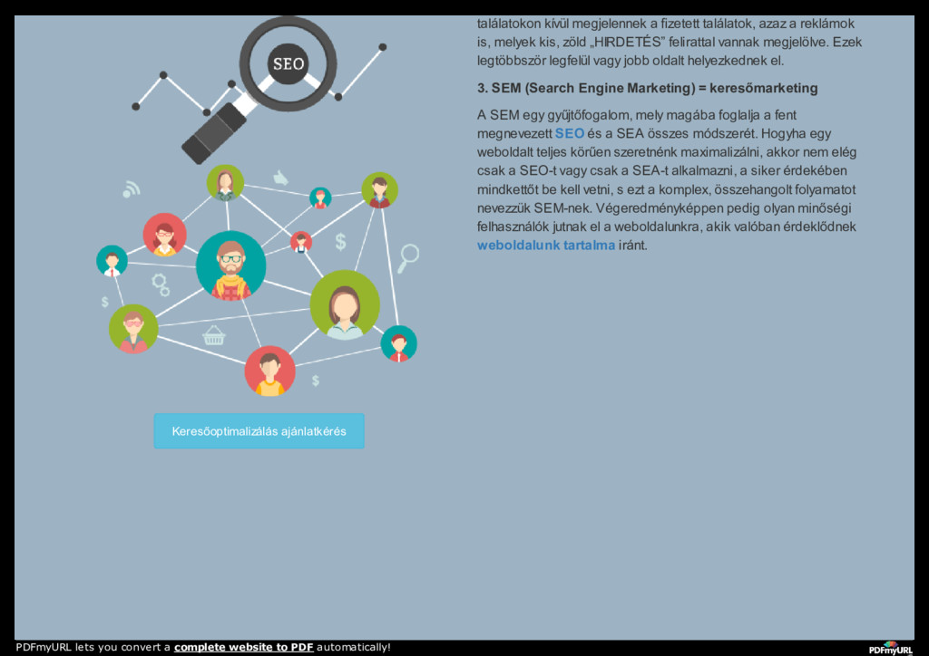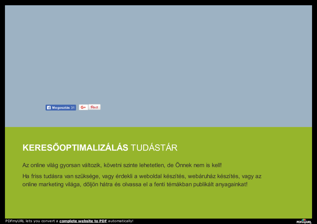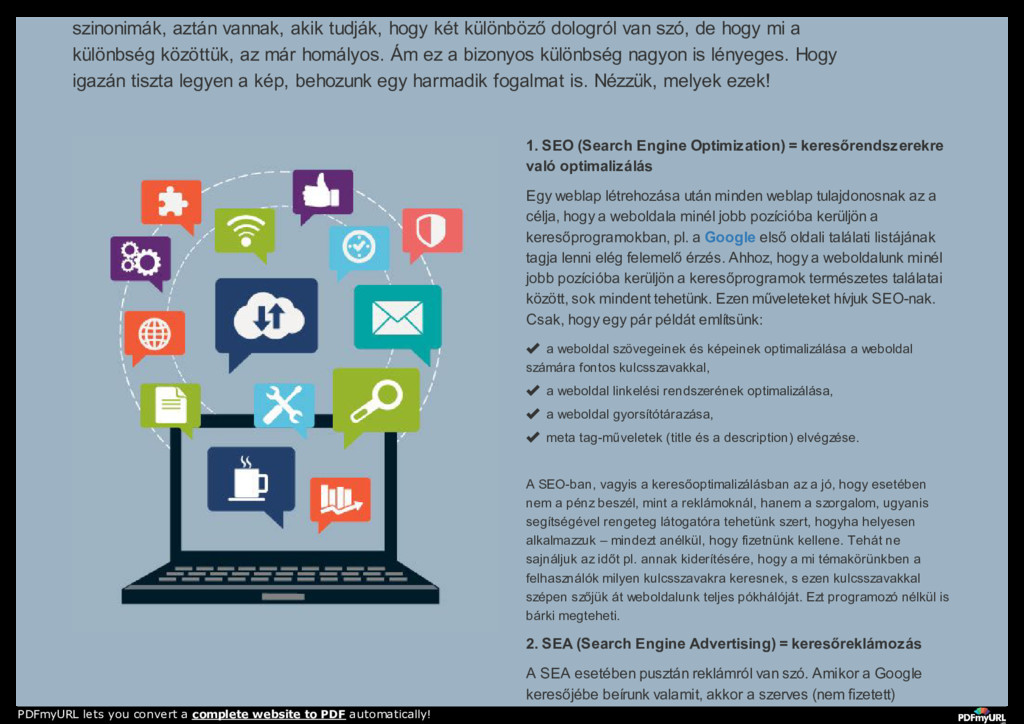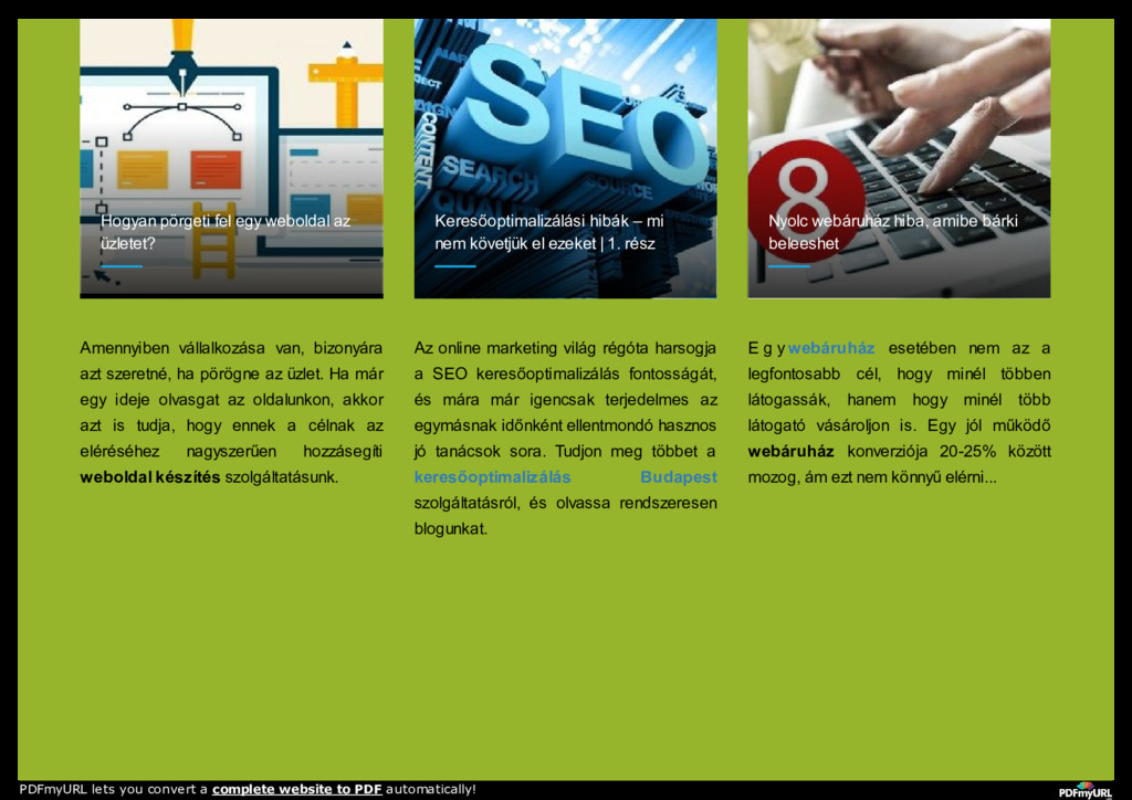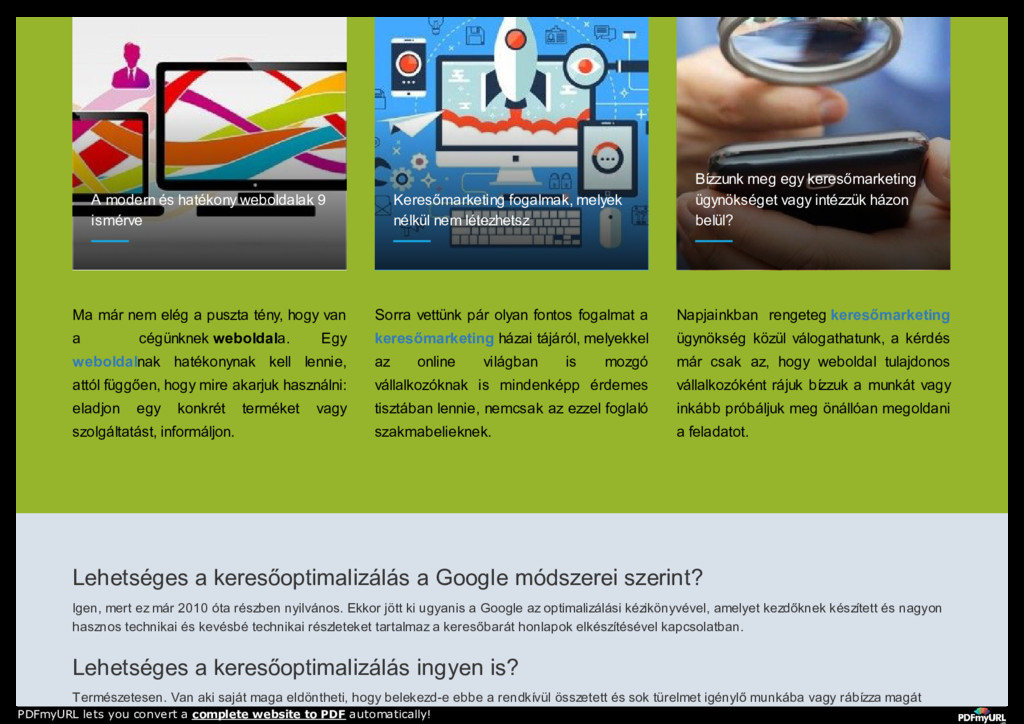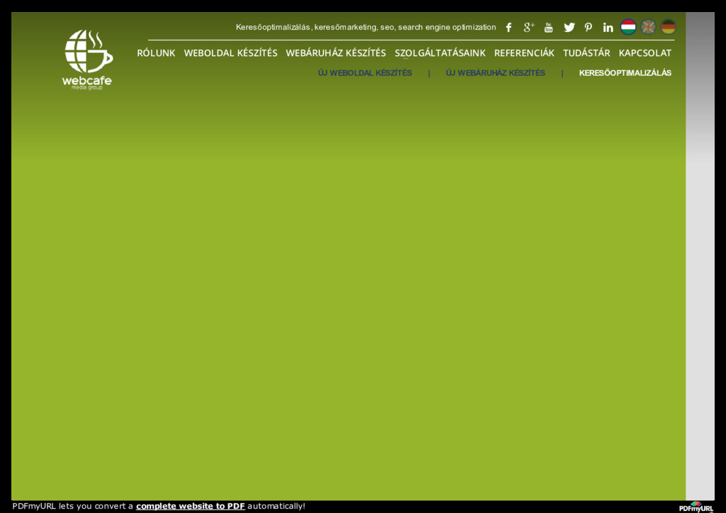 keresőmarketing, seo, search engine optimization RÓLUNK WEBOLDAL KÉSZÍTÉS WEBÁRUHÁZ KÉSZÍTÉS SZOLGÁLTATÁSAINK REFERENCIÁK TUDÁSTÁR KAPCSOLAT PDFmyURL lets you convert a complete website to PDF automatically!