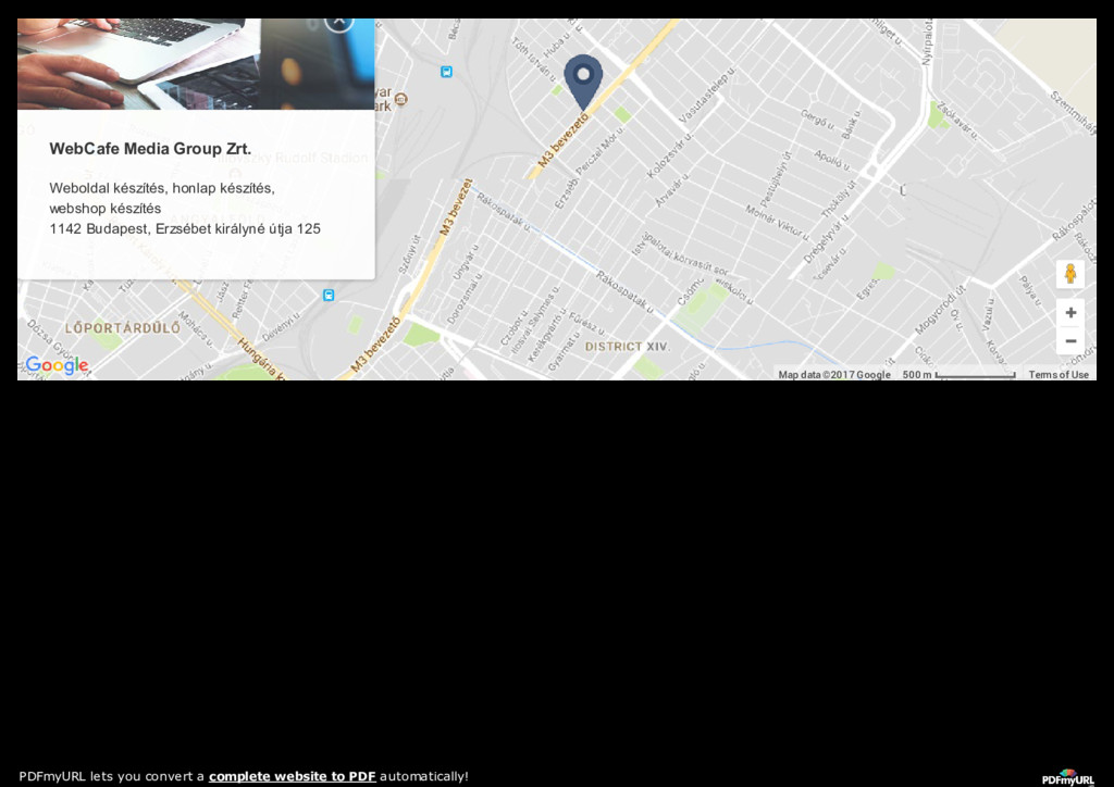 Media Group Zrt. Weboldal készítés, honlap készítés, webshop készítés 1142 Budapest, Erzsébet királyné útja 125 PDFmyURL lets you convert a complete website to PDF automatically!
