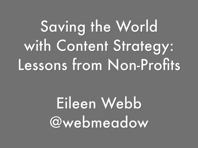 Full transcript is at http://webmeadow.com/blog/archives/201406/saving-world-with-content-strategy-lessons-non-profits .