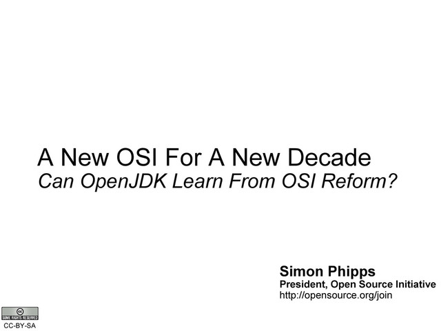 A session at FOSDEM 2013 for the Free Java devroom identifying the pressures of change on OSI and asking what lessons other projects - including OpenJDK - can learn from them.