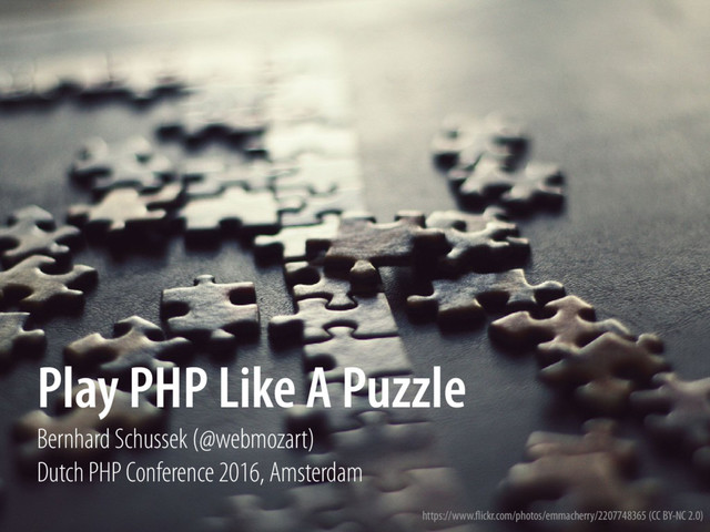 PHP development used to involve lots of handcrafted code. Today it's more like playing a puzzle: Find the pieces that you need, put them together and voilà.