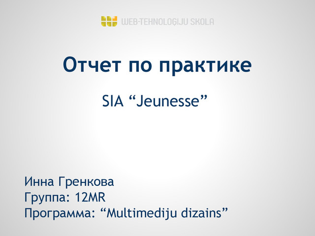 Отчет по практике SIA “Jeunesse” Инна Гренкова Группа: 12MR Программа: