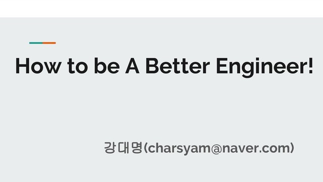 Q. 발표 내용은 무엇인가요? - How to be a better Engineer - 더 좋은 개발자가 되기 위해서 무엇을 해야 하는가? 학습방법? 태도 등.