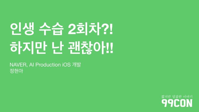 99CON은 짧지만 달콤한 이야기를 컨셉으로 진행되는 컨퍼런스로, 스탭과 발표자를 포함하여 총99명의 참가자가 모이는 이상한모임의 커뮤니티 행사입니다.