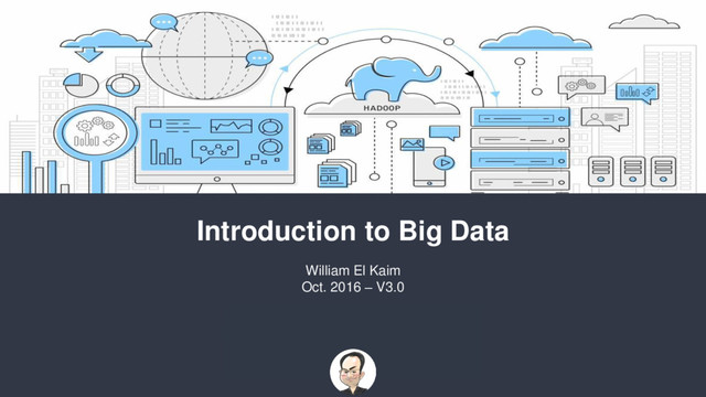 Databases: Cassandra, Ceph, DynamoDB, Hbase, Hive, Impala, Ring, OpenStack Swift, etc. Data Lake Data Preparation Data Sourcing Data Science: Dataiku, Datameer, Tamr, R, SaS, Python, RapidMiner, etc. Data Ingestion Data Sources BI Tools & Platforms App. Services Cascading, Crunch, Hfactory, Hunk, Spring for Hadoop, D3.js, Leaflet Feature Preparation Ingestion Technologies: Apex, Flink, Flume, Kafka, Amazon Kinesis, Nifi, Samza, Spark, Sqoop, Scribe, Storm, NFS Gateway, etc. Distributed File System: GlusterFS, HDFS, Amazon S3, MapRFS, ElasticSearch Batch Streaming Encoding Format: JSON, Rcfile, Parquet, ORCfile Map Reduce Event Stream & Micro Batch Open Data Operational Systems (ODS, IoT) Existing Sources of Data (Databases, DW, DataMart) Distributions: Cloudera, HortonWorks, MapR, SyncFusion, Amazon EMR, Azure HDInsight, Altiscale, Pachyderm, Qubole, etc. Data Warehouse Lakeshore & Analytics Qlik, Tableau, Tibco, Jethro, Looker, IBM, SAP, BIME, etc. Cassandra, Druid, DynamoDB, MongoDB, Redshift, Google BigQuery, etc. Machine Learning: BigML, Mahout, Predicsys, Azure ML, TensorFlow, H2O, etc. Analytics App and Services Copyright © William El Kaim 2016