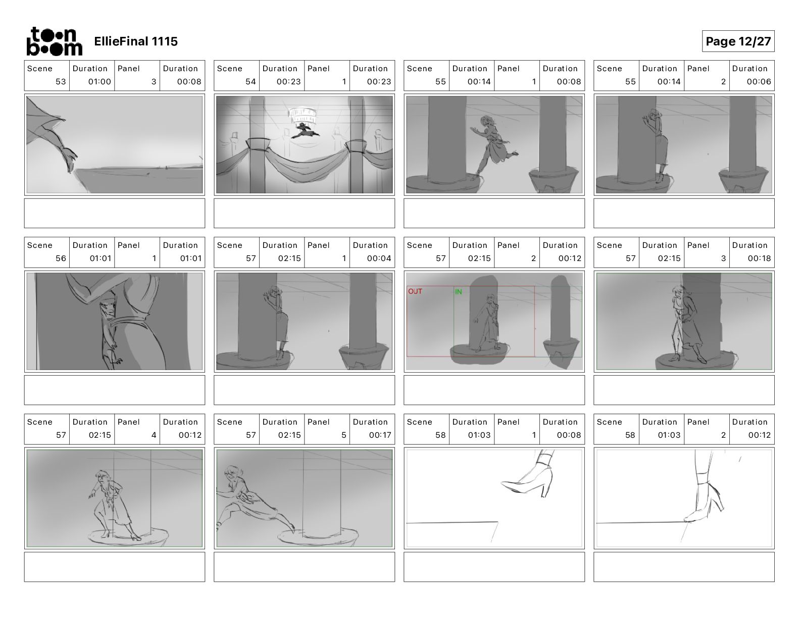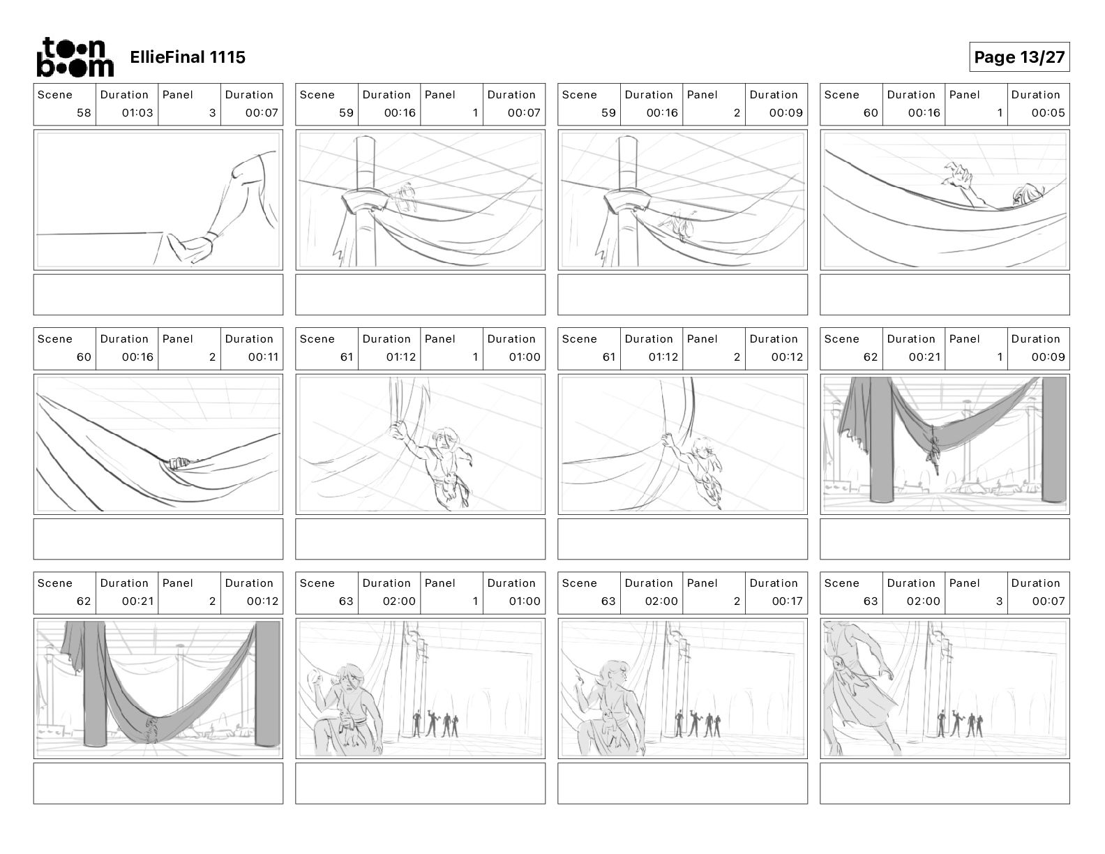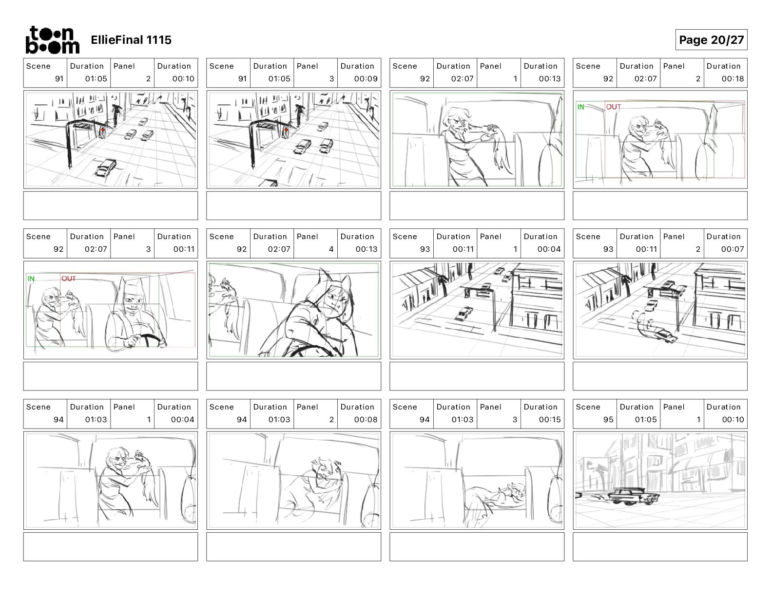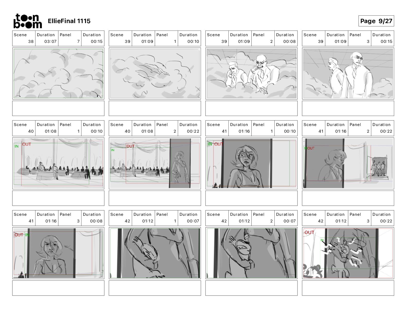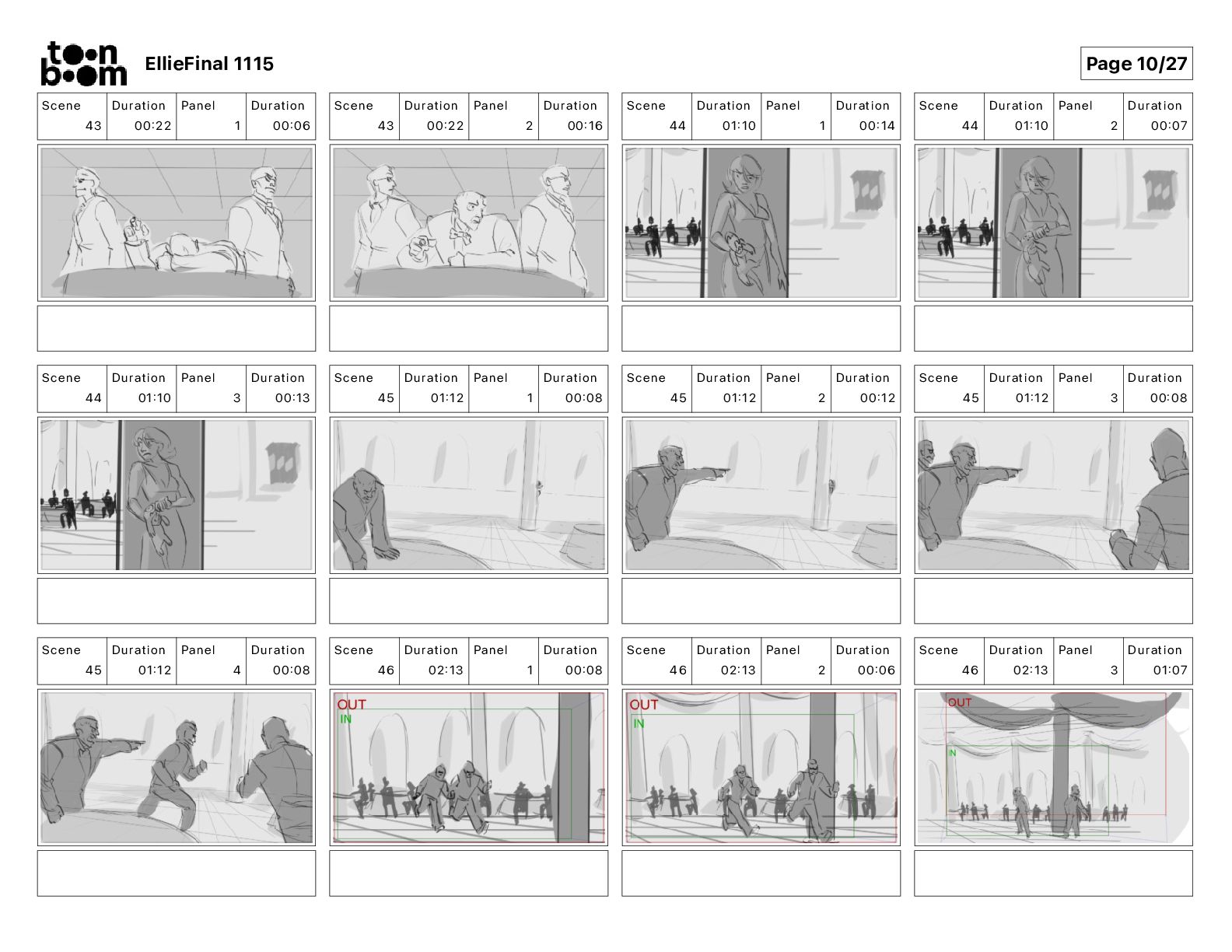Scene 100 Duration 00 16 Panel 1 Duration 00 06 Scene 100 Duration 00 16 Panel 2 Duration 00 10 Scene 101 Duration 00 22 Panel 1 Duration 00 11 Scene 101 Duration 00 22 Panel 2 Duration 00 11 Scene 102 Duration 01 04 Panel 1 Duration 00 15 Scene 102 Duration 01 04 Panel 2 Duration 00 13 Scene 103 Duration 02 16 Panel 1 Duration 00 16 Scene 103 Duration 02 16 Panel 2 Duration 00 15 Scene 103 Duration 02 16 Panel 3 Duration 00 13 Scene 103 Duration 02 16 Panel 4 Duration 00 11 Scene 103 Duration 02 16 Panel 5 Duration 00 09 EllieFinal 1115 Page 22/27