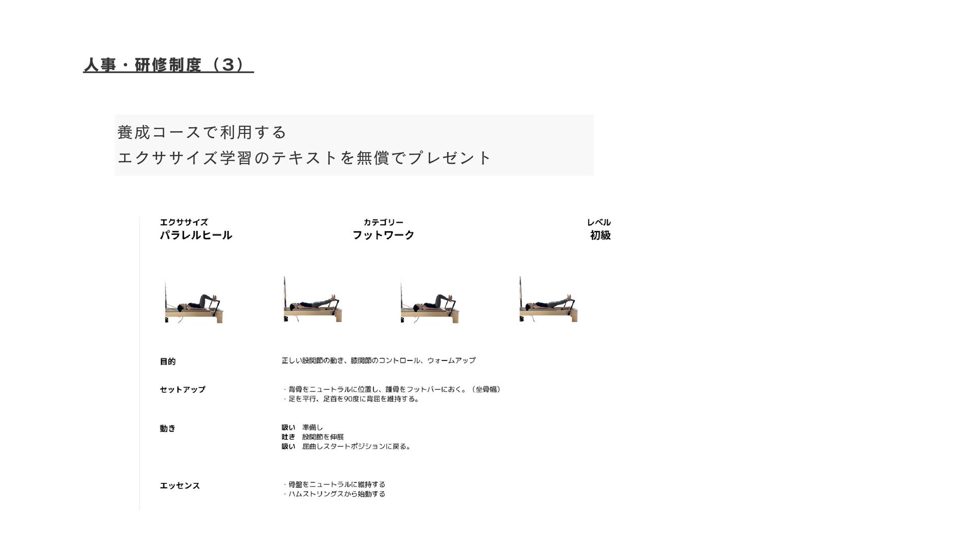 養成コースで利用する エクササイズ学習のテキストを無償でプレゼント 人事・研修制度(3)