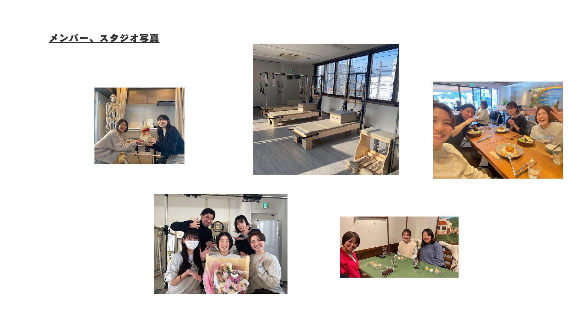 働き手が自宅の近くで働き、早 く家に帰れるようにし、長く働 けるように 01 02 03 ボディメイクとしてのピラティ スではなく、ライフスタイル/ ステージの変化に伴い生じる身 体の不調を改善するツールとし てピラティスを位置づけ提供