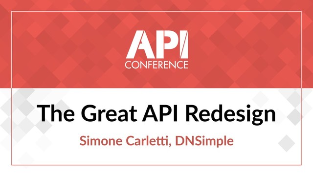 Redesigning a public web service API is a major undertaking: 3 years, thousands of hours of work, new clients, new documentation, a series of releases… This is the story of the DNSimple API v2, a project that started with a single, innocuous GitHub pull request with the title "Proposal for versioned API" in December 2013, and which came to a successful general availability launch at the end of 2016. Simone will explain some of the decisions that the team took over the last 3 years that shaped the development of the API as well as challenges the team faced, and provide you with tips and techniques that may help you in your next major API project. Finally, the important question: what’s next?