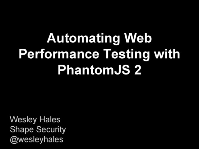 Automating Web Performance Testing with PhantomJS 2 Wesley Hales Shape
