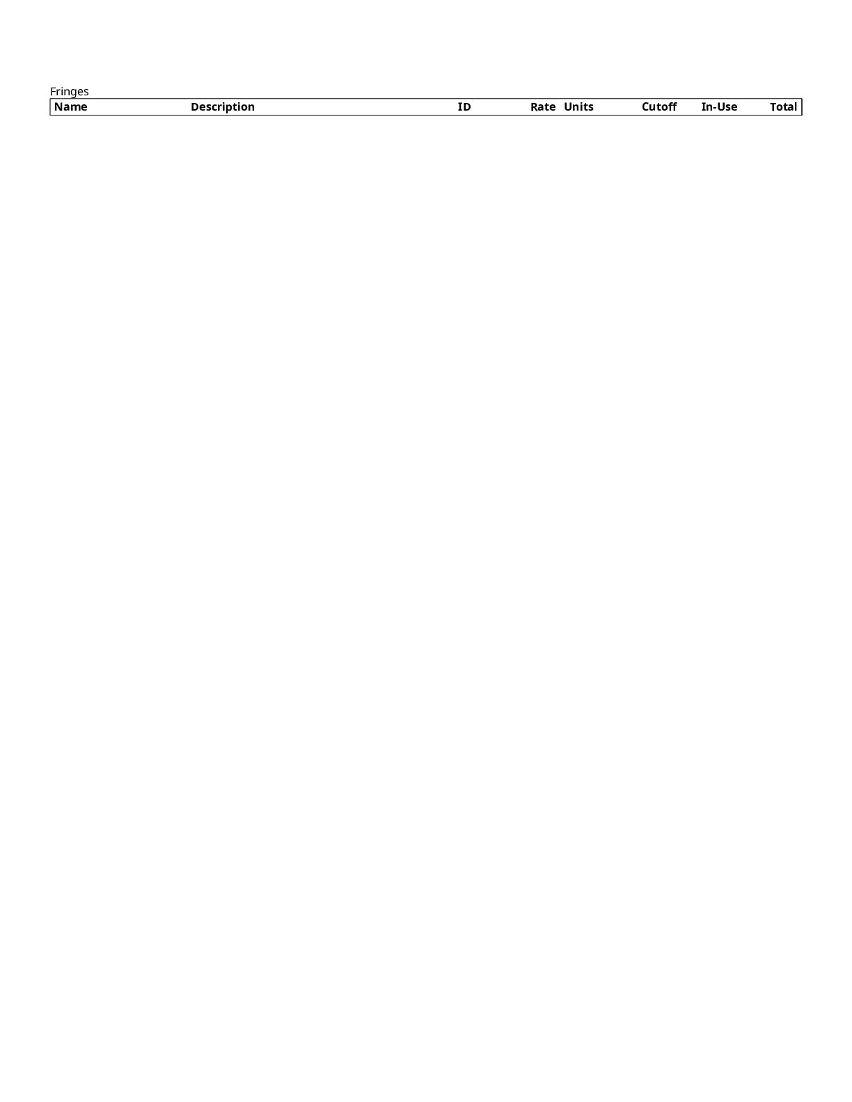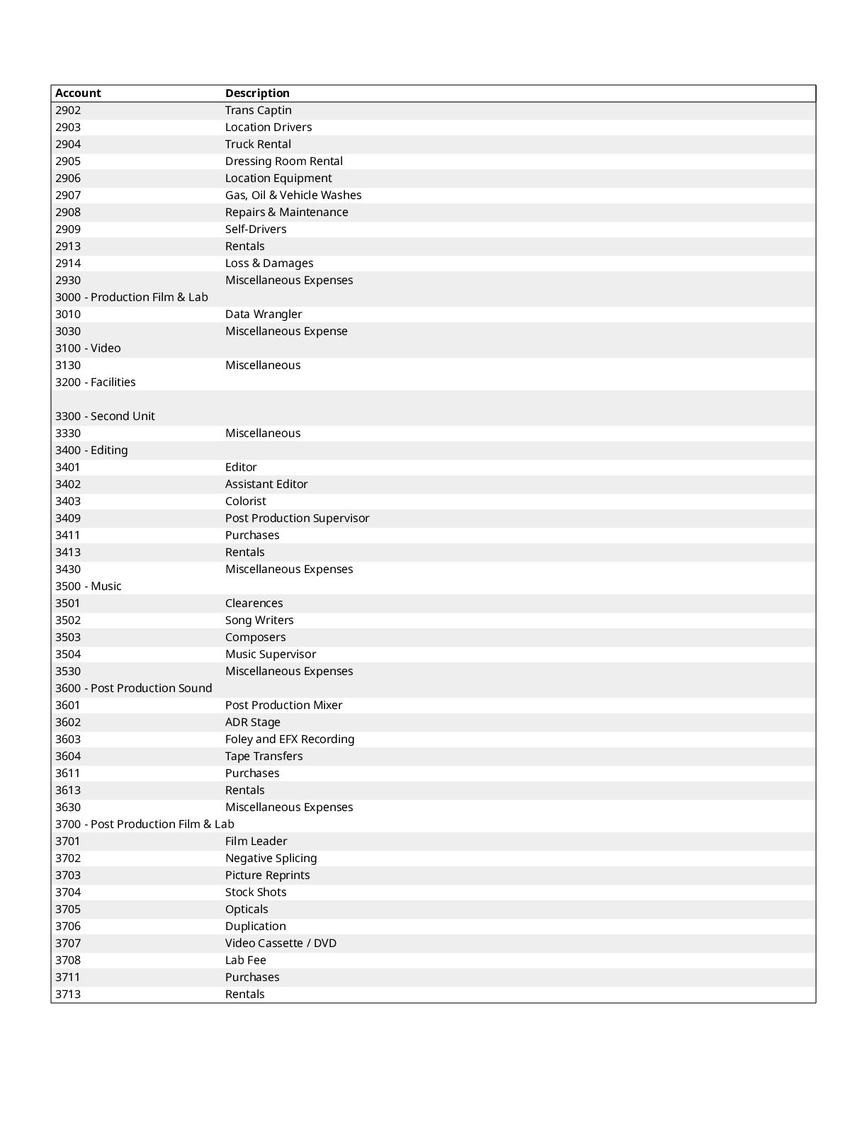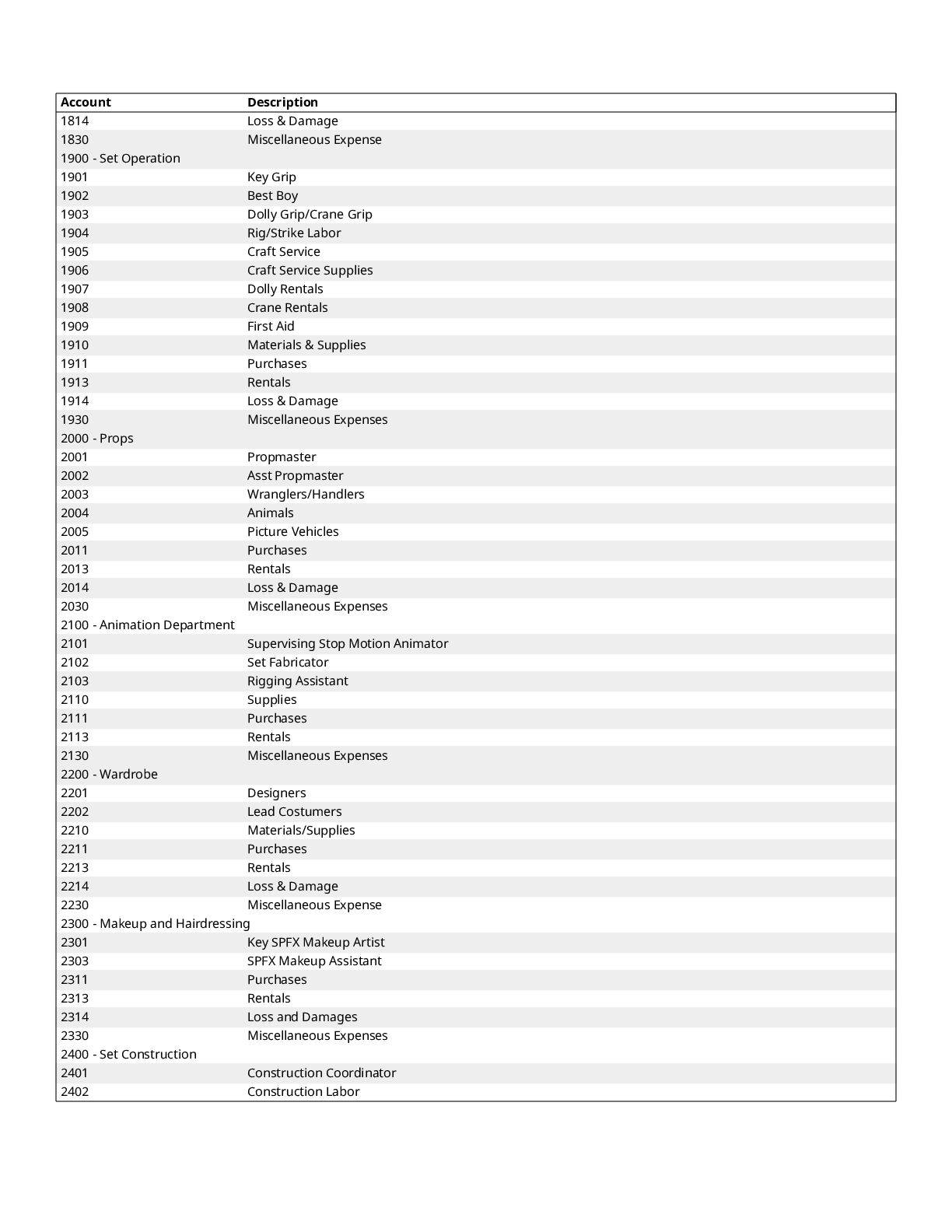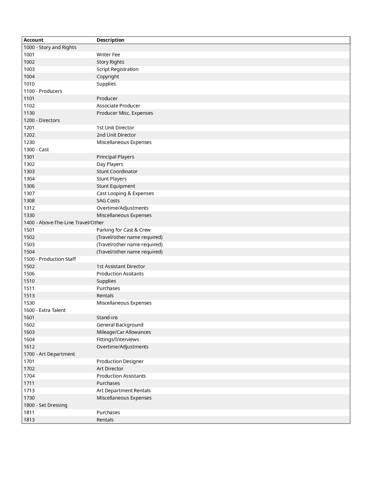 $300 1200 Directors $0 1300 Cast $0 1400 Above-The-Line Travel/Other $0 Total Above-The-Line $325 1500 Production Staff $0 1600 Extra Talent $0 1700 Art Department $1,200 1800 Set Dressing $0 1900 Set Operation $1,092 2000 Props $700 2100 Animation Department $0 2200 Wardrobe $200 2300 Makeup and Hairdressing $3,925 2400 Set Construction $0 2500 Set Lighting $1,000 2600 Camera $1,500 2700 Production Sound $200 2800 Locations $854 2900 Transportation $0 3000 Production Film & Lab $0 3100 Video $0 3200 Facilities $0 3300 Second Unit $0 Total Production $10,671 3400 Editing $1,606 3500 Music $300 3600 Post Production Sound $72 3700 Post Production Film & Lab $0 3800 Titles & Opticals $0 Total Post Production $1,978 3900 Insurance $800 4000 Publicity $900 4100 Product Placement $0 4200 General Expense $0 Total Other $1,700 Contingency of Total Budget: 10% $1,467 Total Above-The-Line $325 Total Below-The-Line $14,349 Total Above and Below-The-Line $14,674 Total Fringes $0 Grand Total $16,141