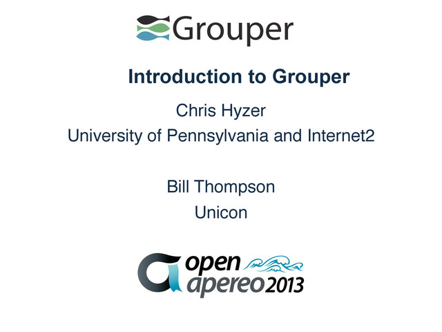 Grouper, a project of the Internet2 Middleware Initiative, is a critical component of an open source identity and access architecture. Built by and for higher education, Grouper's access management and provisioning capabilities are uniquely suited to address the complexity and flexibility required by the modern institution. This session will be an introduction to Grouper. We will complement a discussion of Groupers concepts, features, capabilities, and usage scenarios with hands-on activities. Come learn what Grouper can do for your campus!