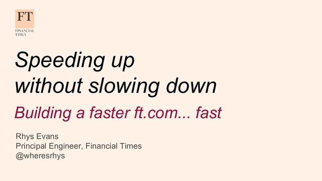 At FT we built one of the world's fastest media websites, and release to production dozens of times a day. But the architectural and organisational decisions aimed at allowing us to deliver reliable features quickly and consistently don't always fit neatly with our desire to optimise performance.
