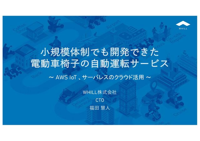 ⼩規模体制でも開発できた 電動⾞椅⼦の⾃動運転サービス WHILL株式会社 CTO 福⽥ 慧⼈ ~ AWS IoT 、サーバレスのクラウド活用