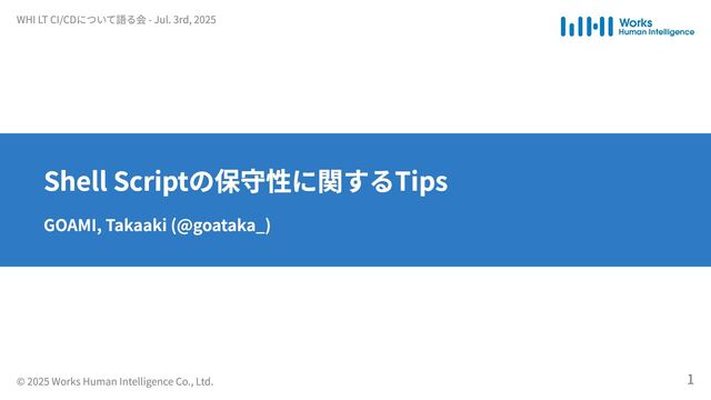 local -r log_level="${1}" local -r expected="${2}" ( source "$(dirname "${BASH_SOURCE[0]}")/logger.sh" # Given set_log_level "${log_level}" # When local -r actual="$(get_log_level)" # Then assert_equals "${actual}" "${expected}" ) } # パラメータライズドテストの例 get_log_level_test() { local -ar test_cases=( "debug,debug" "info,info" "warn,warn" "error,error" "unknown,info" # デフォルト値 ) execute_parameterized_test "get_log_level_parameterized_test" "${test_cases[@]}" } main() { get_log_level_test } WHI LT CI/CDについて語る会 - Jul. 3rd, 2025 © 2025 Works Human Intelligence Co., Ltd. 38