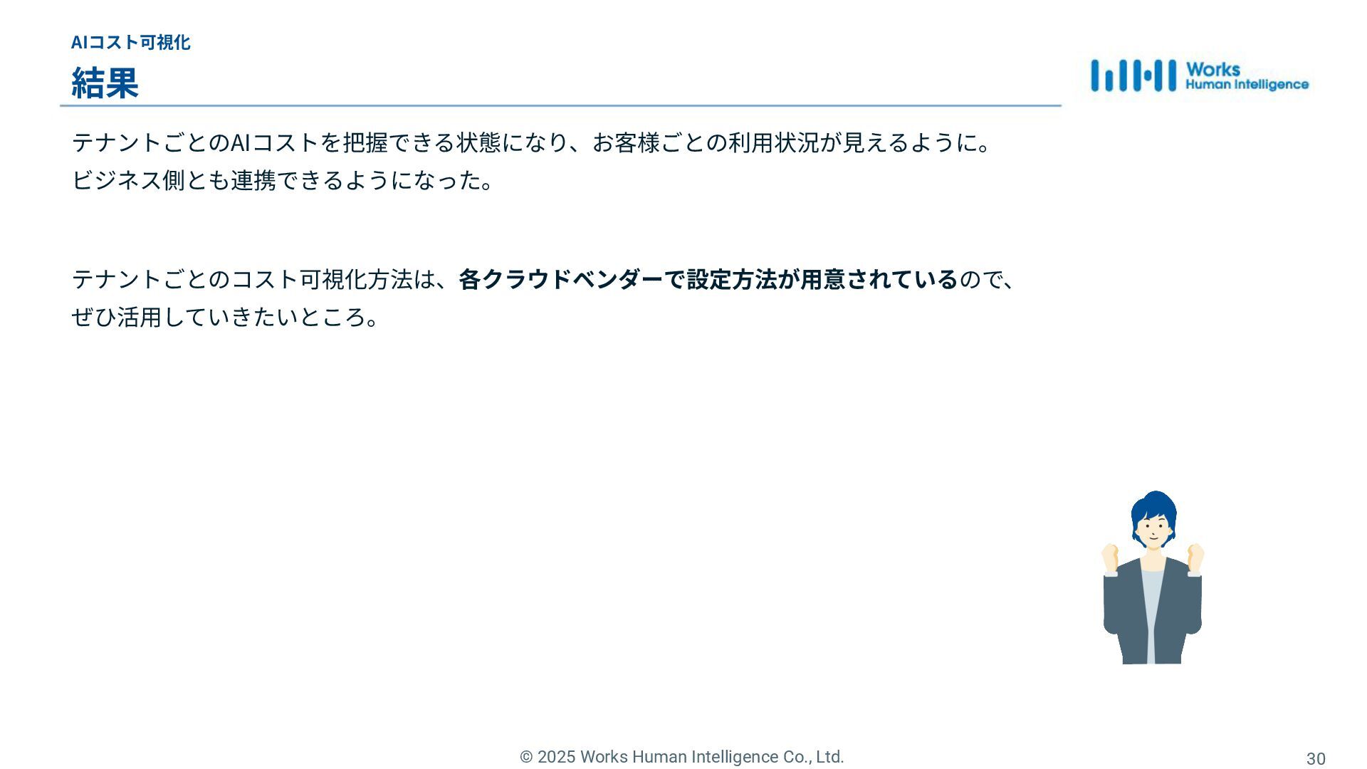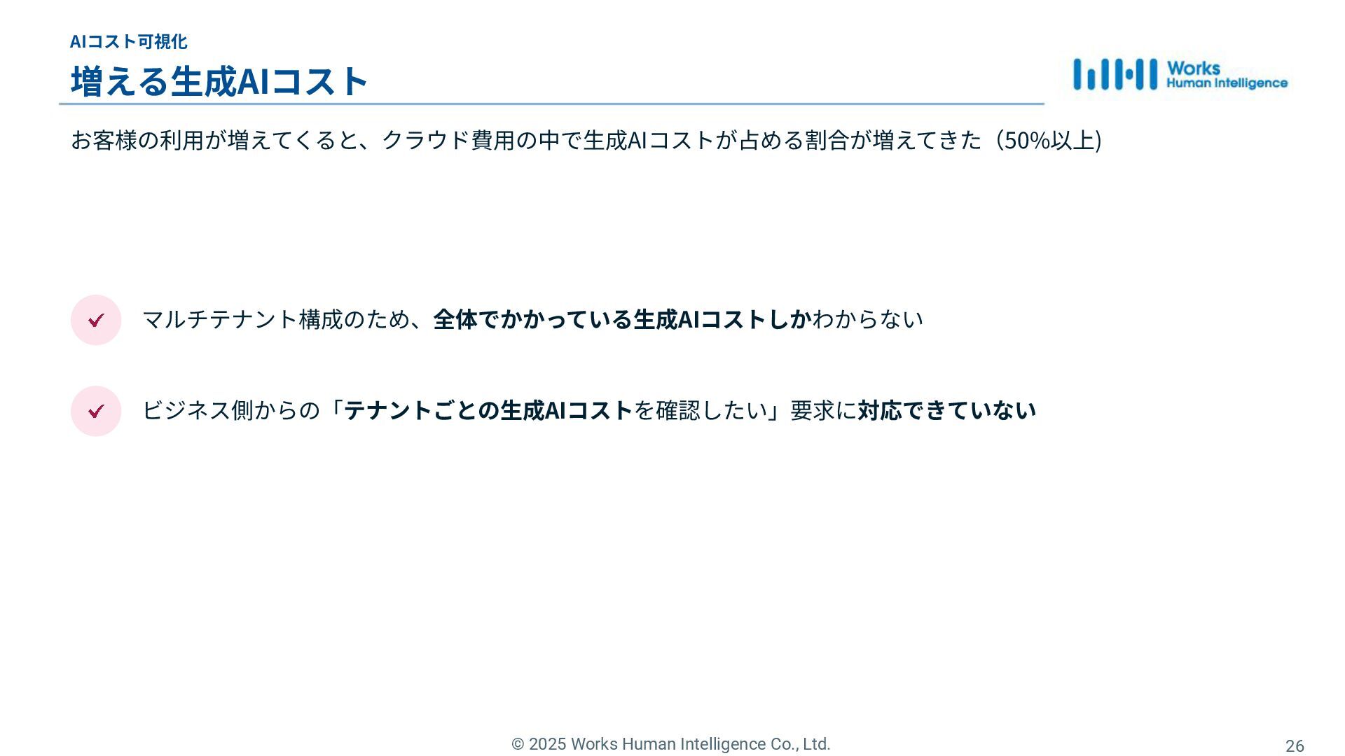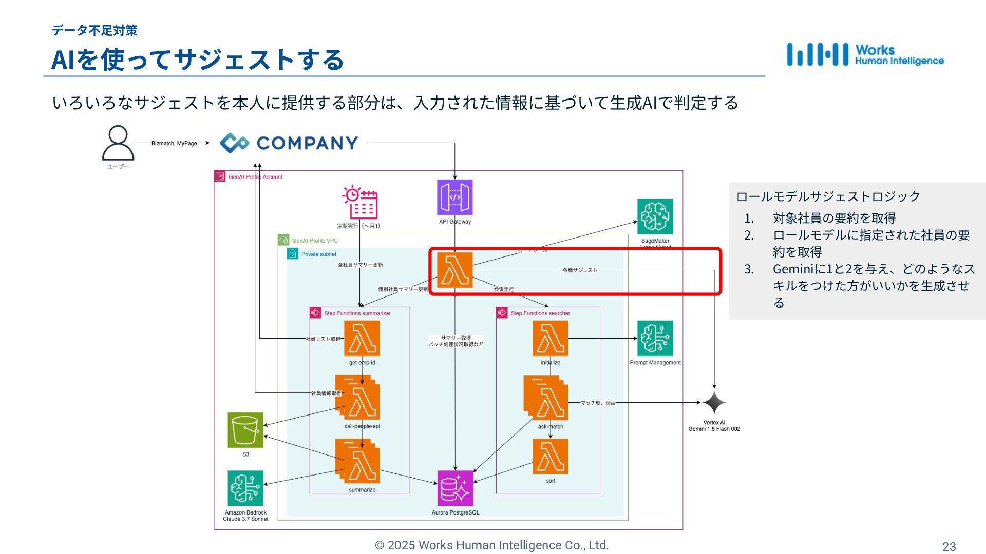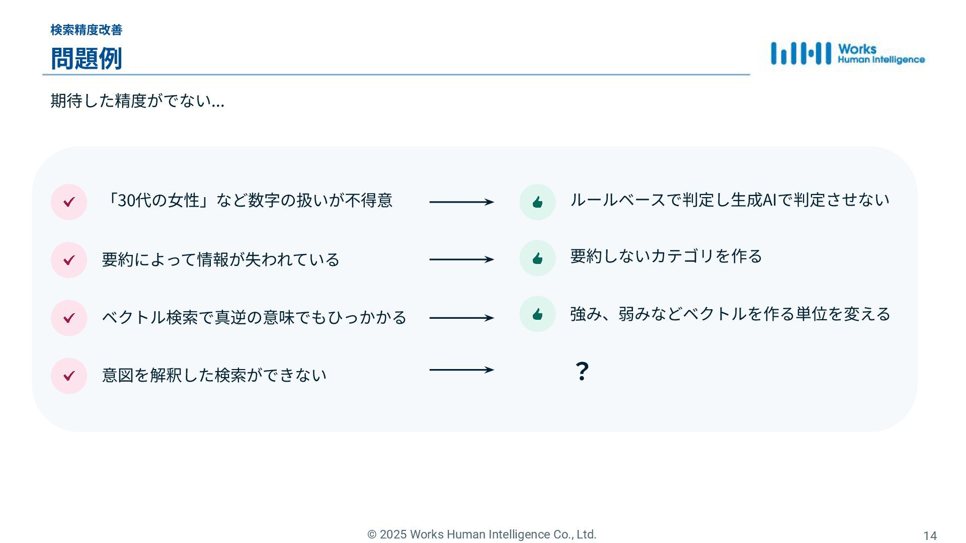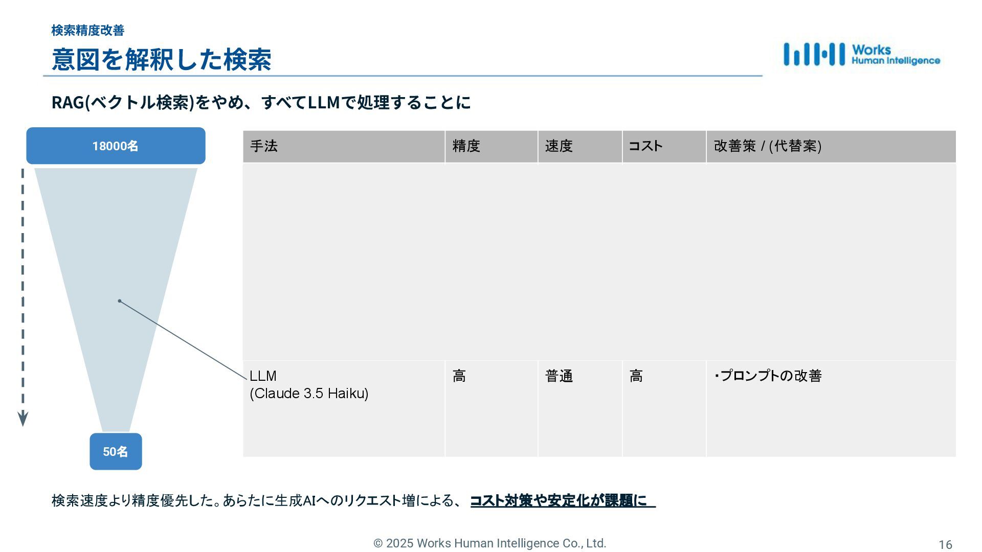 Intelligenceについて ※1 2022年度 ERP市場 - ⼈事‧給与業務分野:ベンダー別売上⾦額シェア 出典:ITR「ITR Market View:ERP市場2024」 ※2 従業員数3,000⼈以上の法⼈ ※3 当社調べ ※4 2024年12⽉末時点の契約法⼈における「COMPANY ⼈事」の契約ライセンス数合計 ⼈事‧給与業務分野 シェアNo.1※1 国内⼤⼿法⼈※2の 3社に1社※3が利⽤ 管理データ数 540万⼈※4 ソリューション 今後の戦略 会社概要 会社名 事業内容 設⽴年 従業員数 株式会社Works Human Intelligence ⼤⼿企業向け統合⼈事システム「COMPANY」の 開発‧販売‧サポート、HR関連サービスの提供 2019年8⽉1⽇ 2,198名(連結)※ ※2024年12⽉末時点 AI‧データ活⽤のための新部⾨設⽴ ⼈的資本マネジメント強化 前代未聞の⼤規模クラウドシフト WHIエンジニアの魅⼒ フルスタック開発 豊富な学習機会 ⼤規模なERP開発