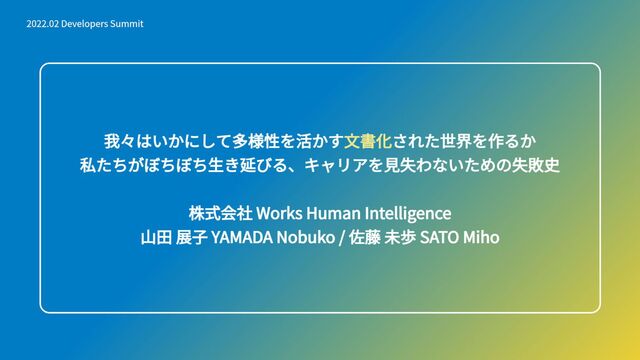 株式会社Works Human Intelligence 山田展子 YAMADA Nobuko / 佐藤未歩 SATO Miho