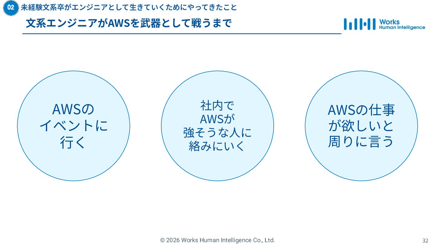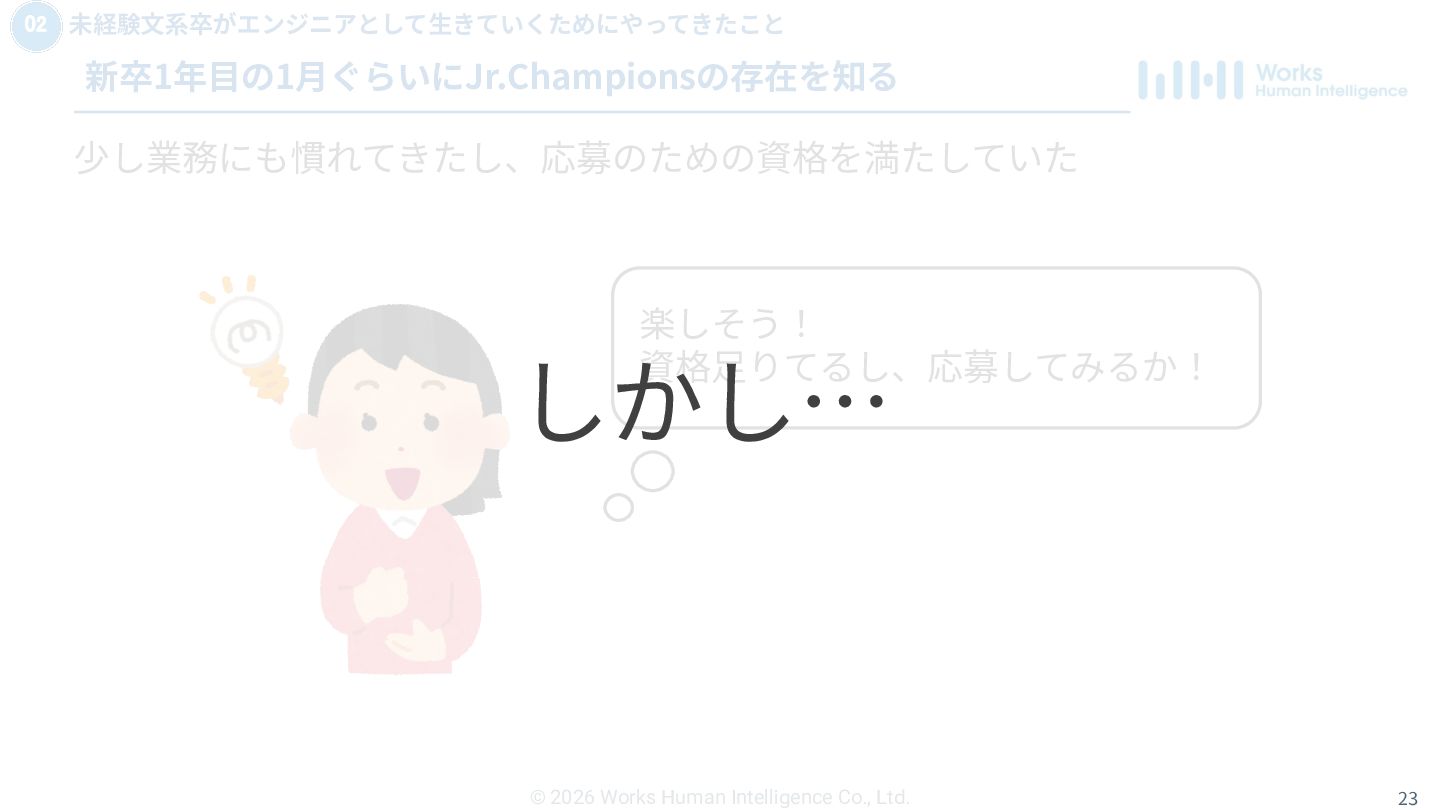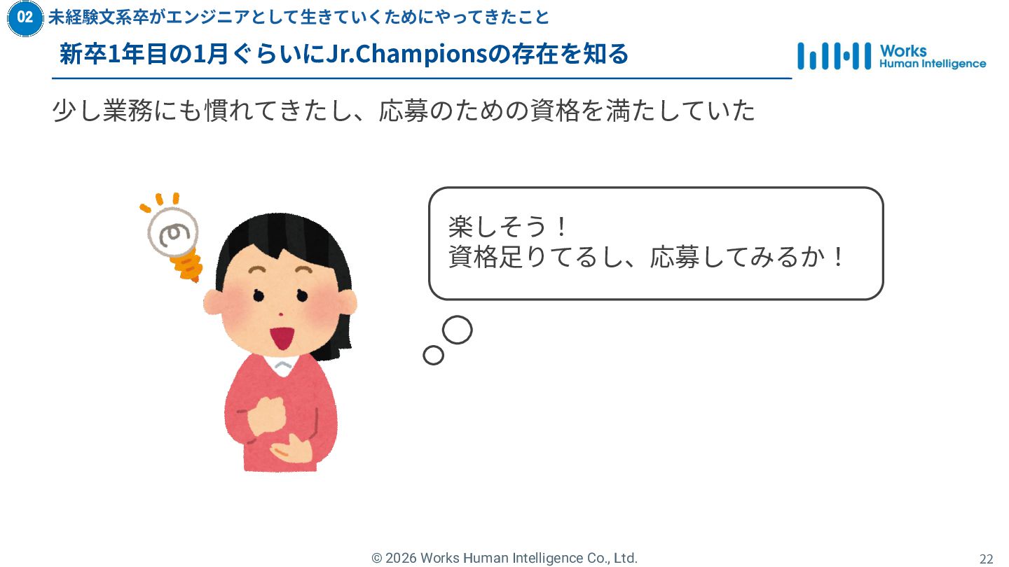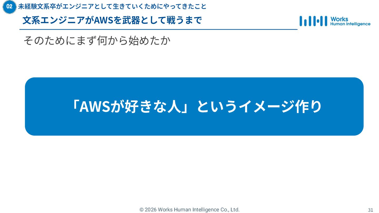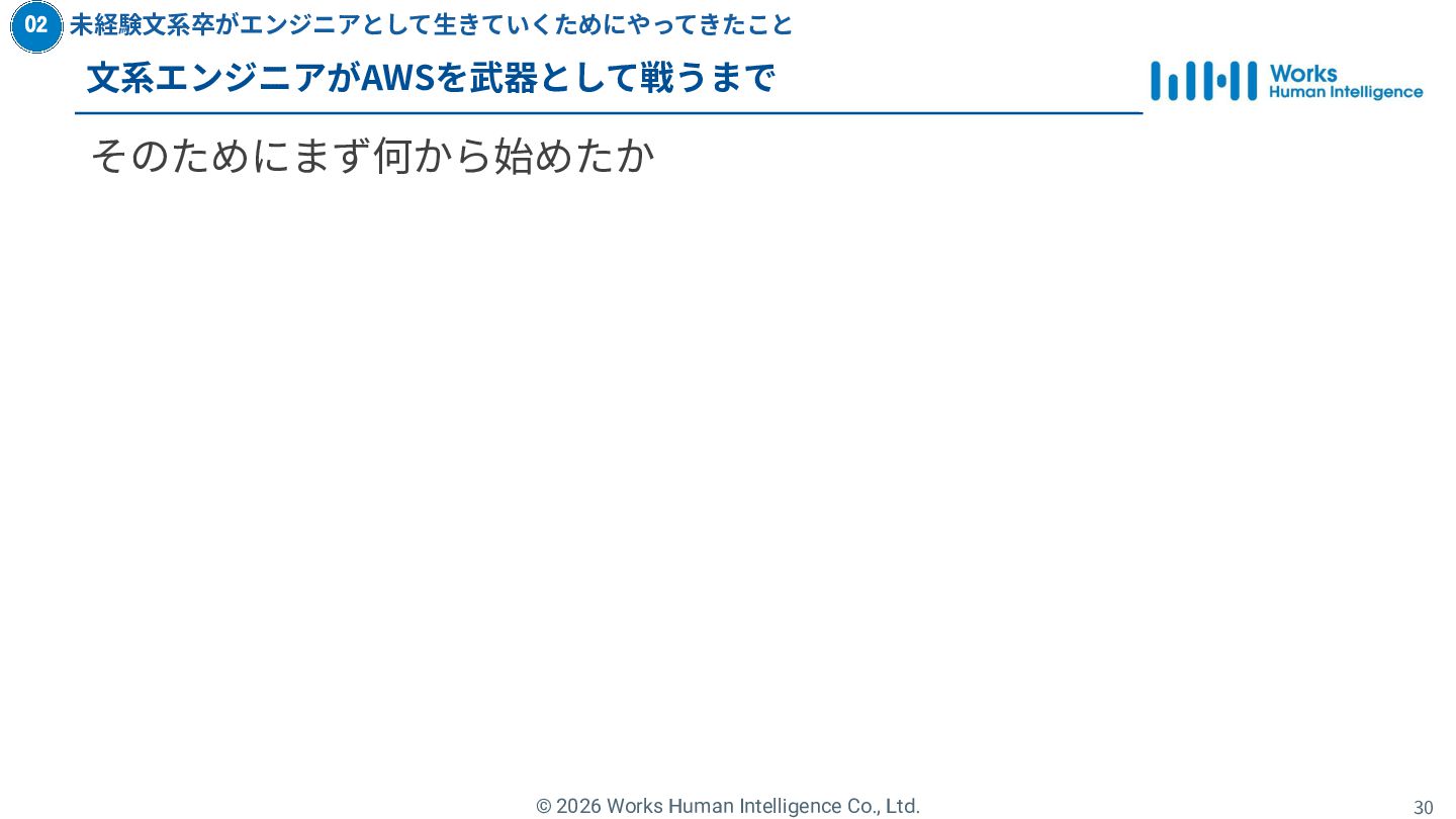 (ほしなな) 経歴 仕事 2023/04:株式会社Works Human Intelligence 新卒⼊社 2023/08:新製品Webアプリケーション開発部⾨配属 2024/10:新製品モバイルアプリケーション開発部⾨配属 2025/06:2025 Japan AWS Jr.Champions 選出 2025 Japan All AWS Certifications Engineers 選出 2026/03:AWS Community Builder 選出 Qiita 教育学部‧国語科専攻 教員免許4つ保有(⼩学校‧中学国語‧⾼校国語‧⾼校書道) 2 学⽣時代 モバイルアプリケーション開発 ( バックエンド > フロントエンド > インフラ ) さいたま出⾝です!
