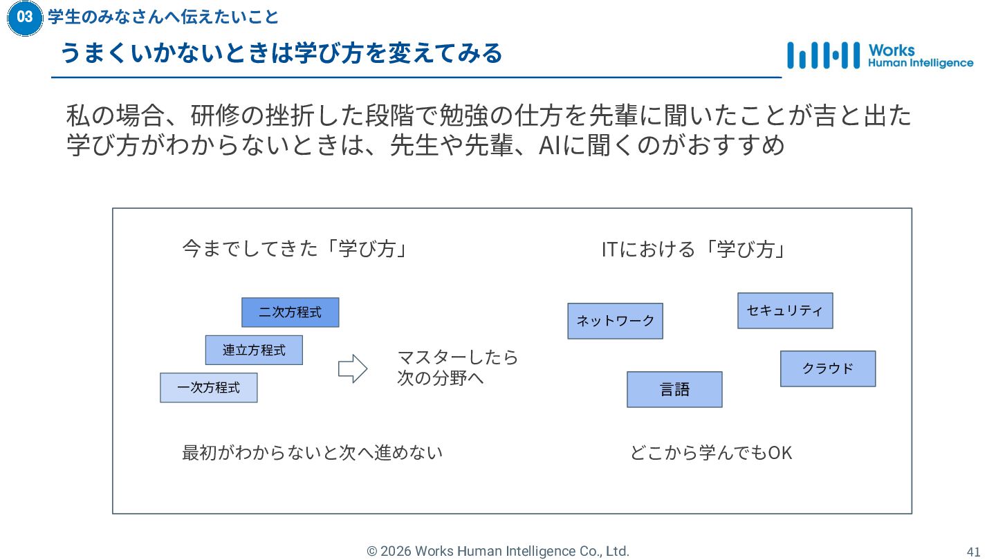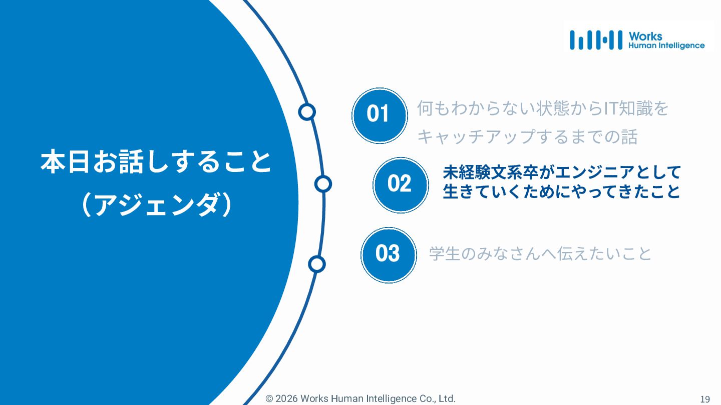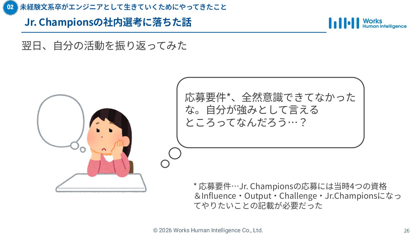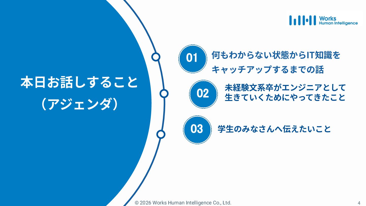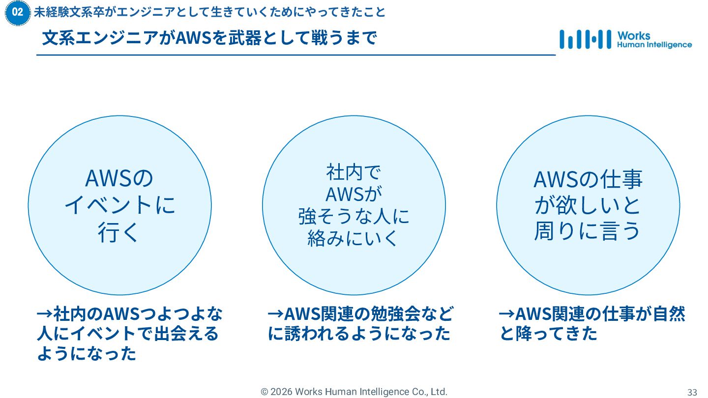 (ほしなな) 経歴 仕事 2023/04:株式会社Works Human Intelligence 新卒⼊社 2023/08:新製品Webアプリケーション開発部⾨配属 2024/10:新製品モバイルアプリケーション開発部⾨配属 2025/06:2025 Japan AWS Jr.Champions 選出 2025 Japan All AWS Certifications Engineers 選出 2026/03:AWS Community Builder 選出 Qiita 教育学部‧国語科専攻 教員免許4つ保有(⼩学校‧中学国語‧⾼校国語‧⾼校書道) 2 学⽣時代 モバイルアプリケーション開発 ( バックエンド > フロントエンド > インフラ ) さいたま出⾝です!