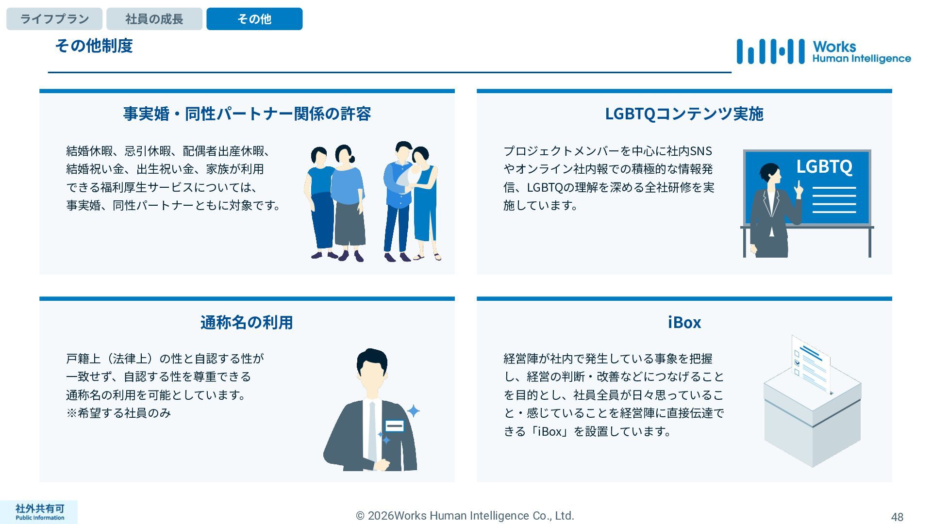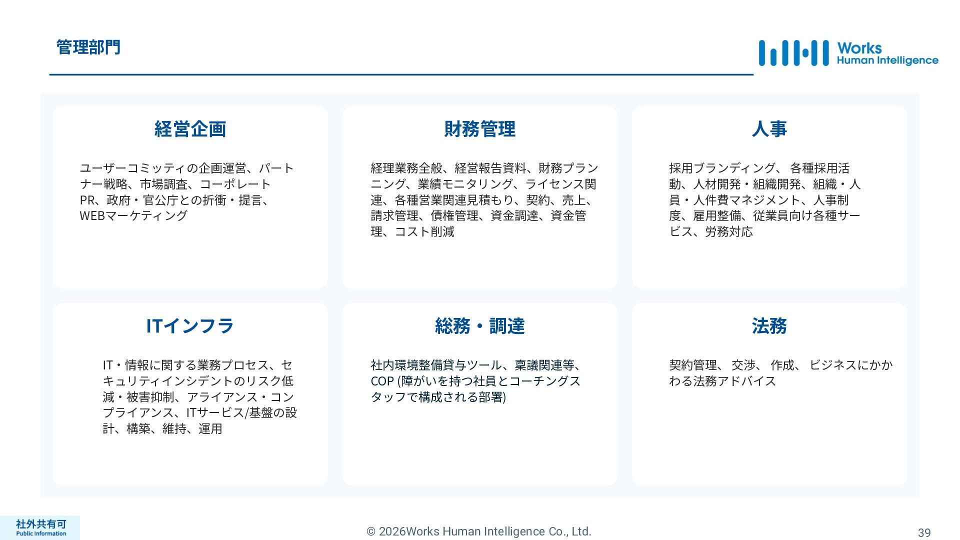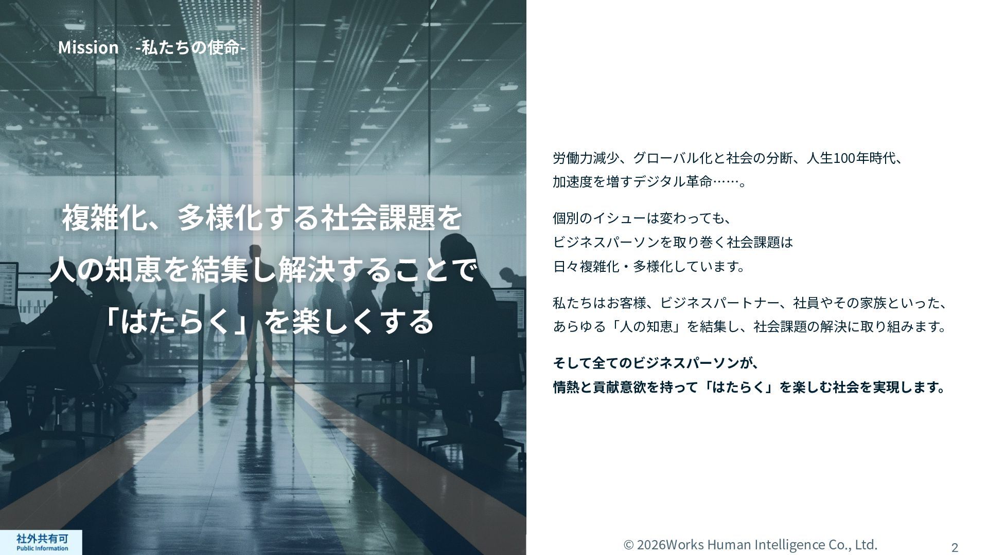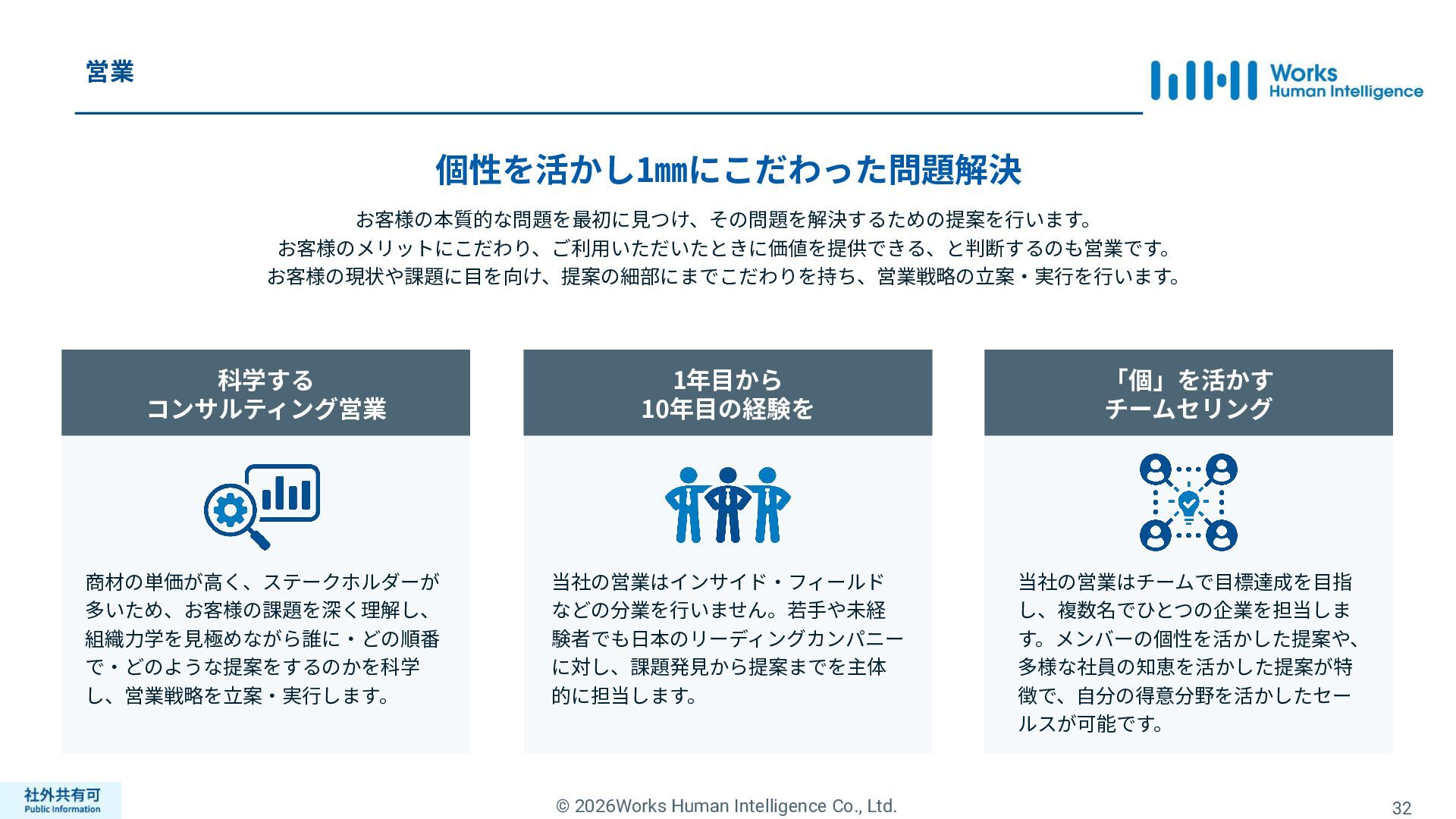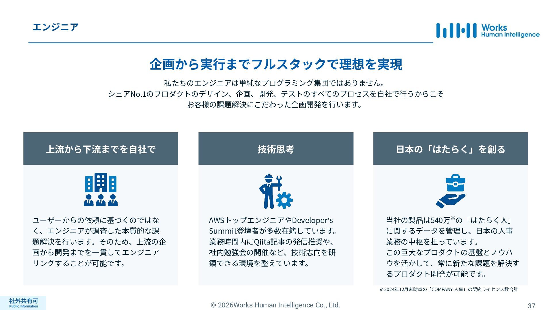 ティ」に所属する約1,100法⼈‧団体の⼈事部⾨から 寄せられる声を⾏政機関に届けることで、法制度や ⾏政⼿続きに起因するユーザーの課題解消を⽬指す 活動に取り組んでいます。 また、⾏政機関との意⾒交換を通じて得られた情報 を「COMPANY」の企画‧開発に役⽴てるとともに、 お客様にご提供しています。 ⽇々お客様の導⼊、運⽤に関わっているベンダーだか らこそ、導⼊や運⽤段階を⾒据えた選定サポートを提 供することができます。 ⼈事業務に関する幅広い知識と⼈事システムについて の深い知⾒を備えたコンサルタントがお客様の不安や 懸念を解消し、⼈事の未来におけるあるべき姿を実現 するパートナーとしてお客様をサポートします。 9,000名以上の会員で構成され、製品活⽤や業務運⽤ 事例の研究、お客様相互の情報共有、意⾒交換活動を 実施しています。また、いただいたご意⾒を製品‧ サービスの改善に活⽤するとともに、関連法制度の 改正に向けた意⾒集約と⾏政への提⾔を⾏い、社会 全体での業務課題の解決を⽬指します。 WHIではお客様から寄せられる声を様々な観点から分析 し、社内への問題提起につなげています。経営はもちろ ん、社内のあらゆる部署を巻き込んで改善に向けた施 策を推進し、取り組み内容や今後の⽅針をレポートに まとめてお客様に報告しています。このように、お客様 の声から改善点を洗い出して施策を推進し、それを認 識していただいたうえで改めてお客様の声を聞くという サイクルを継続的にまわしています。 コンサルティング ユーザーコミッティ 調査‧分析 企業の⼈事課題としては、労働⼈⼝の減少による間接 部⾨の⼈員削減、⼈材獲得競争の激化、市場からの⼈ 的資本に関する要求等、もはや⼀企業が単独で解決し にくい課題が浮き彫りになっている現状です。WHIは、 これらの社会情勢や企業からの要請に対して課題解決 に向けて取り組むべく、パートナー企業との連携強化 を進めてまいります。 パートナーアライアンス 2004年からビジネスフォーラム「COMPANY Forum」 を運営。近年の市場に関する共有はもちろん、様々な 分野のエキスパートによる多様な考え⽅に触れること で「働く」について考える機会をご提供します。 各企業を代表するパイオニアにご登壇いただいていま す。 ビジネスフォーラム IT コンサルティング カスタマー サクセス