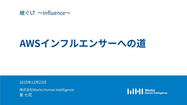 © 2025 Works Human Intelligence Co., Ltd. 2025年12⽉22⽇ AWSインフルエンサーへの道 継ぐLT