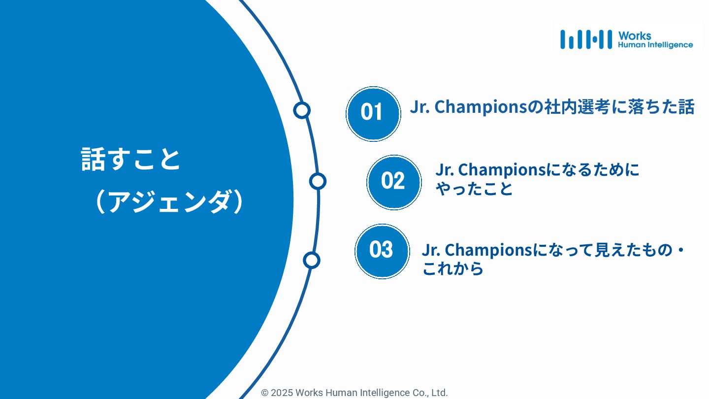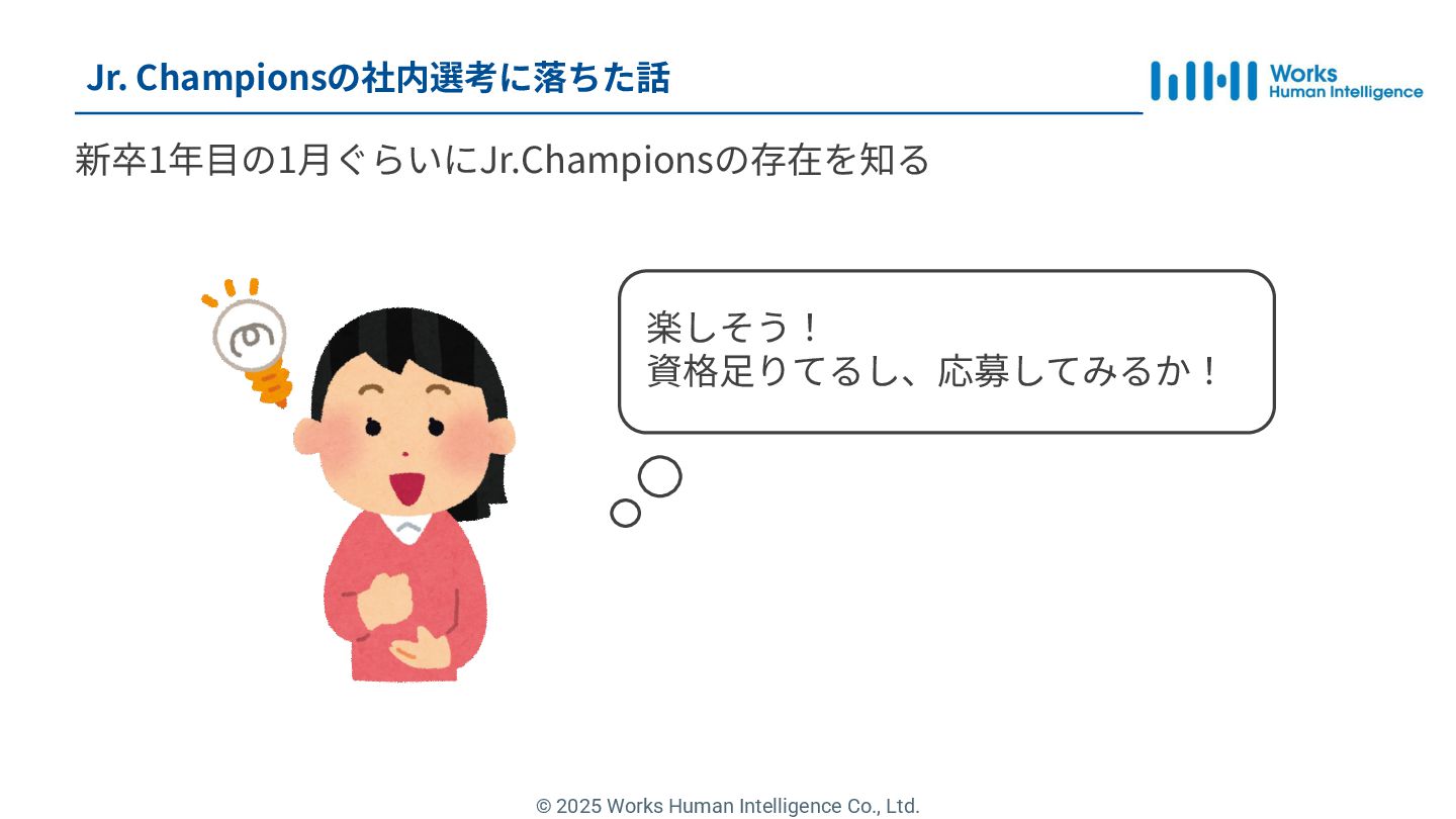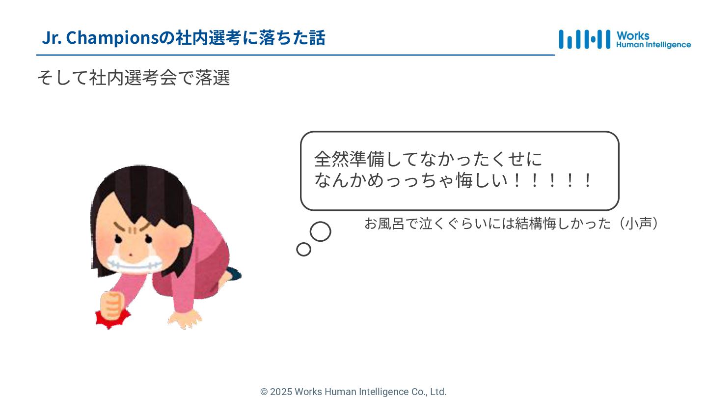 © 2025 Works Human Intelligence Co., Ltd. Jr. Championsの社内選考に落ちた話 そして社内選考会で落選