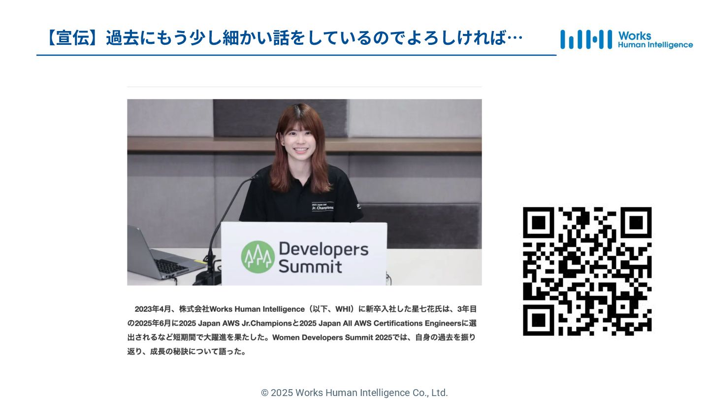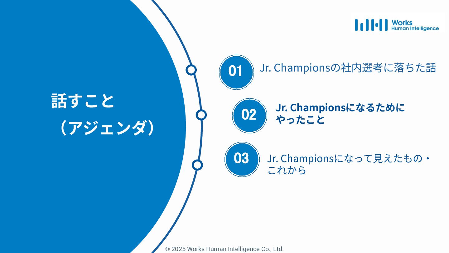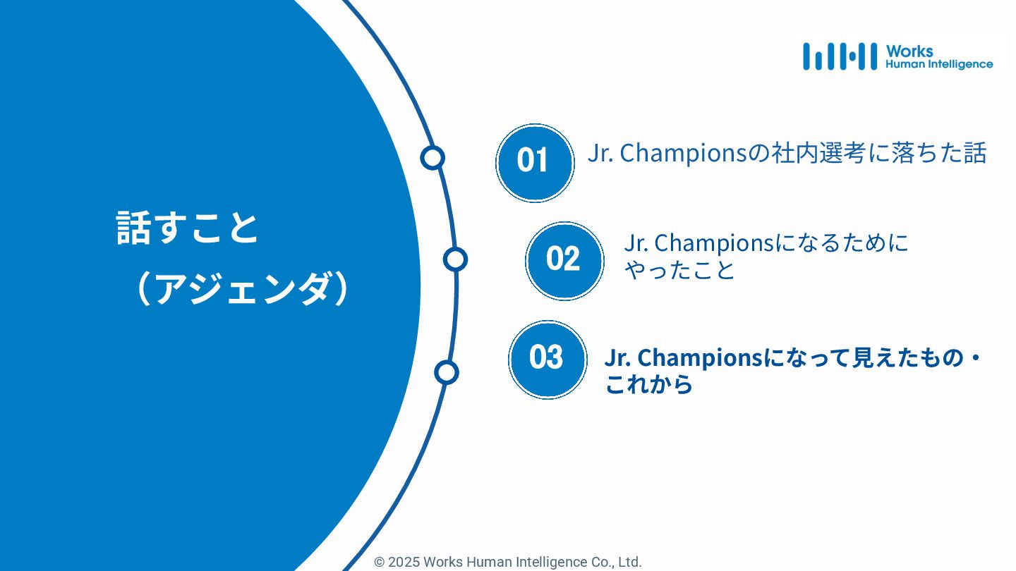 © 2025 Works Human Intelligence Co., Ltd. Jr. Championsの社内選考に落ちた話 そして社内選考会で落選